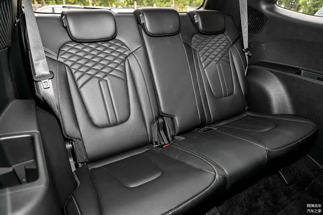 身高1.8米的乘客坐进前排,调整好合适的坐姿,头部空间一拳半。坐进第二排,头部空间一拳半,腿部空间三拳有余。坐进第三排,头部空间一拳,腿部空间一拳。这款车乘坐空间符合中大型级别的标准,一家人出行不拥挤。