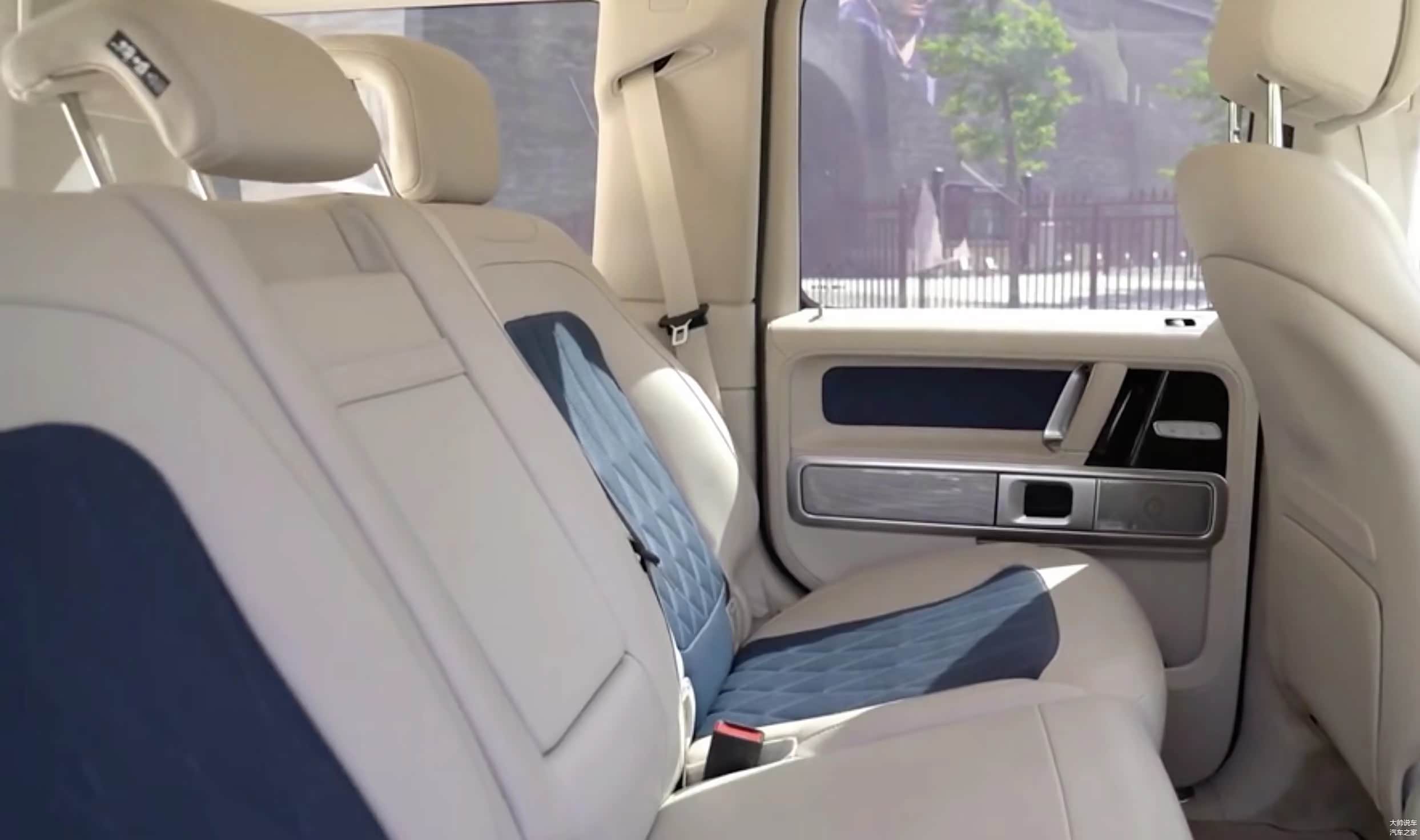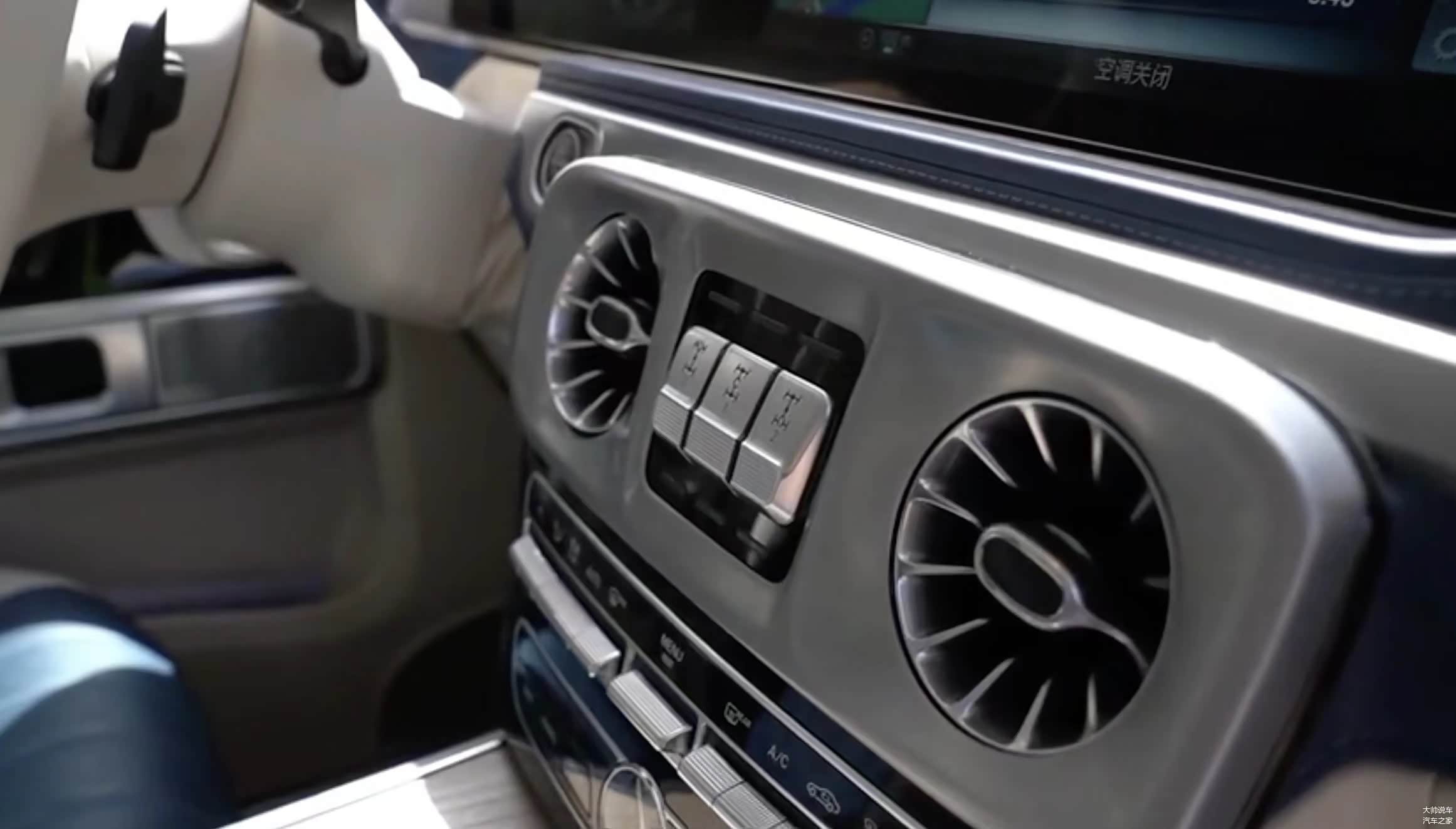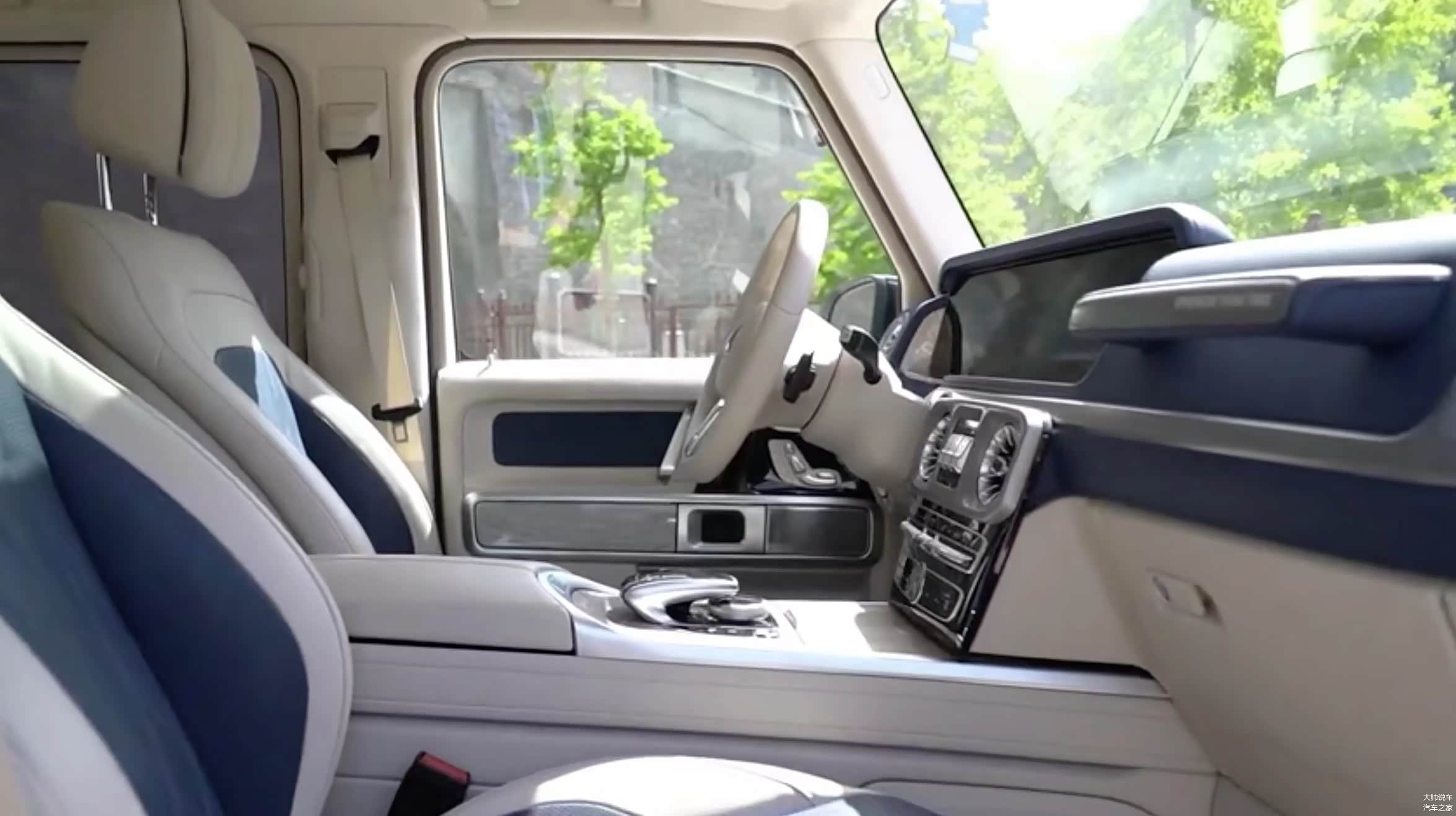 坐进车内,家族化的设计语言随处可见,散发出一股浓郁的豪华气息。和普通版不同的是,有三种特别设计风格的内饰,包括黑色Nappa皮革、米/蓝、米/红,每种内饰均搭配有不同样式的木质饰条。双12.3英寸高清显示屏,搭配专为G级越野车开发的显示屏越野模式,能实时反馈高度、坡度、斜度、转向角、低速齿轮和出于工作模式的差速锁等数据。差速锁控制键设计在了两个空调出风口的中间,还有下面随手可控的物理按键,大大的提升了在越野时操作的方便性和安全性。