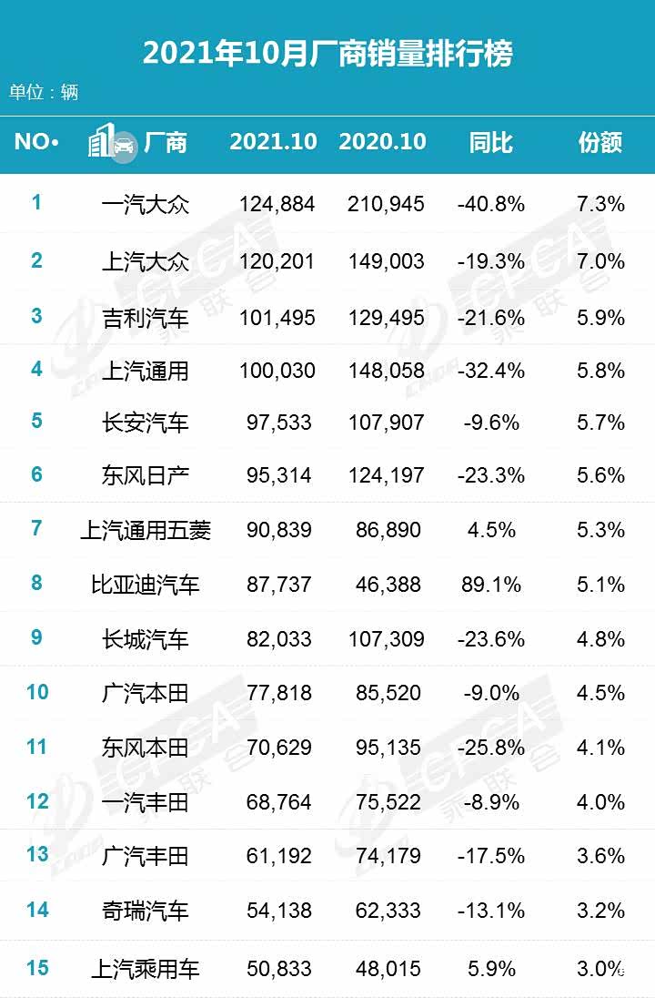 厂商排行方面,南北大众仍旧占据前两名,只是一汽大众相比上个月超越了上汽大众坐上了头把交椅,相同的是传统车企的同比数据依旧不是很好看,比亚迪依靠旗下多种新能源车型仍然呈现了将近90%的正增长,这么发展下去的话,相信不久的将来比亚迪将会拿到更好的名次。