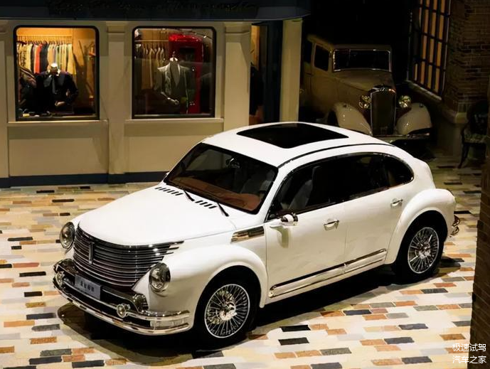 侧面的话像甲壳虫,整个造型包括车尾也跟甲壳虫比较像,所以这款车外观方面复古风格还是挺浓的。包括此前它展出了一个展车轮毂也是密辐式的,那种复古风更浓了。