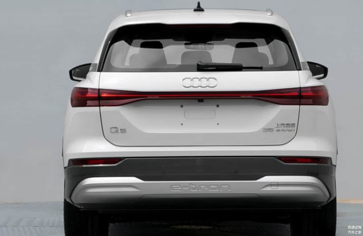 这款车的车尾方面采用了一个贯穿式的尾灯设计,其实跟现款的奥迪Q5感觉好像差别并不是很大。底部的话因为是一个纯电车型,就没有排气那些东西,基本就是一个全部包围的。