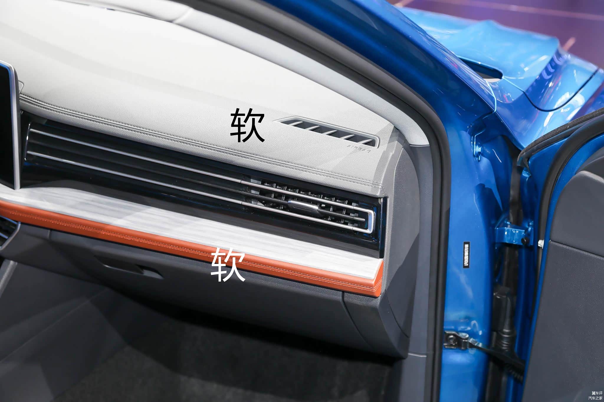 新款速腾的中控台上下区域均采用了软性材料包裹,门板的手肘位置也采用了皮质面料+软性材质包裹,质感不错,摸起来手感良好。