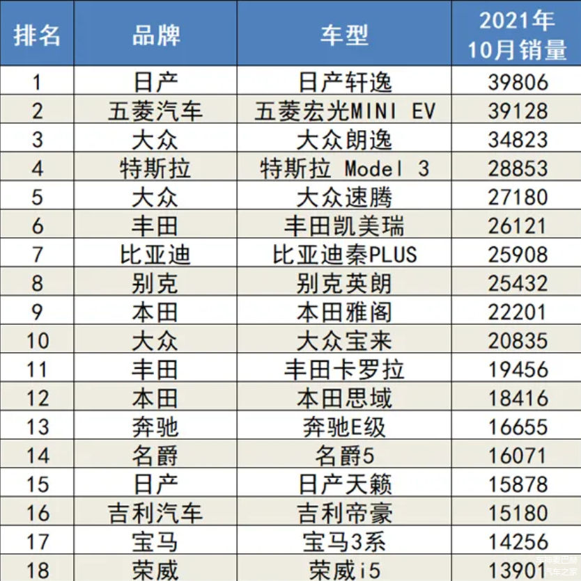 由于缺芯的影响,今年10月各大车企销量几乎都是负增长,但是在单车销量排行方面,那些较为低端的车型往往则销量更高,原因就是他们不需要太多高端的芯片,有些车型甚至连ESP车身稳定都没有,所以博世公司的缺芯供应问题也不存在,十月销量前二是 轩逸(图片 | 参数 | 询价)与宏光MINI EV。