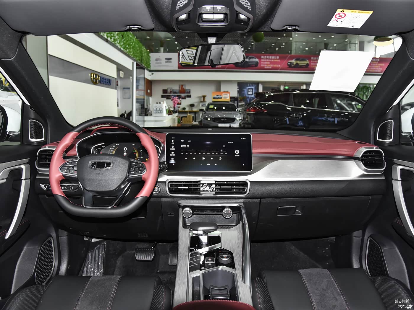 外观部分,这台车以科技吉利4.0时代“能量风暴”为设计语言,可以说非常张扬,车头部分是大面积的亮灰色饰板,搭配黑色蜂窝状中网,下部是稀疏的格栅,看起来就有一股狠劲,当然也只是看起来哈!