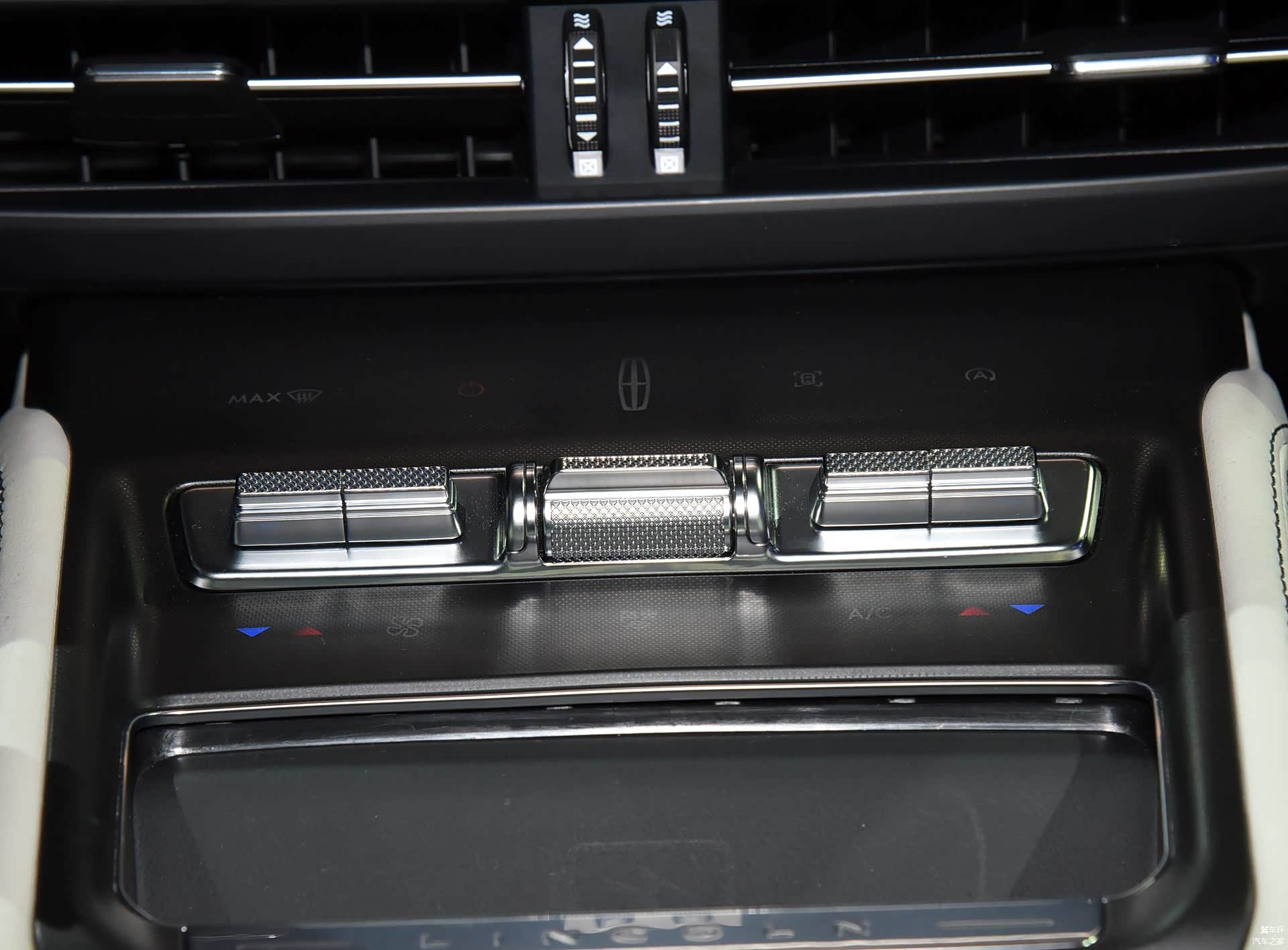 前后排空调操作部分都使用了金属拨杆,做工非常精致,前排空调采用了双区独立控制设计,符合这个档次该有的表现。