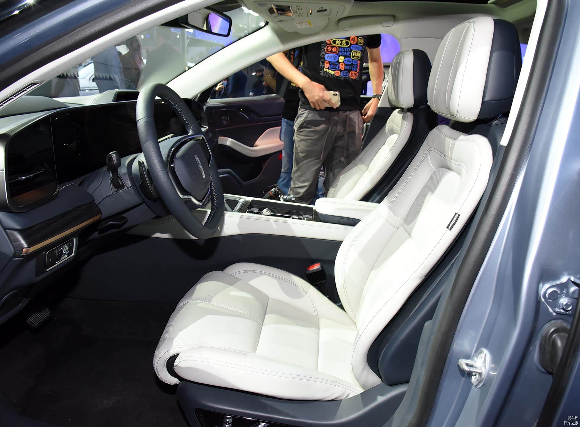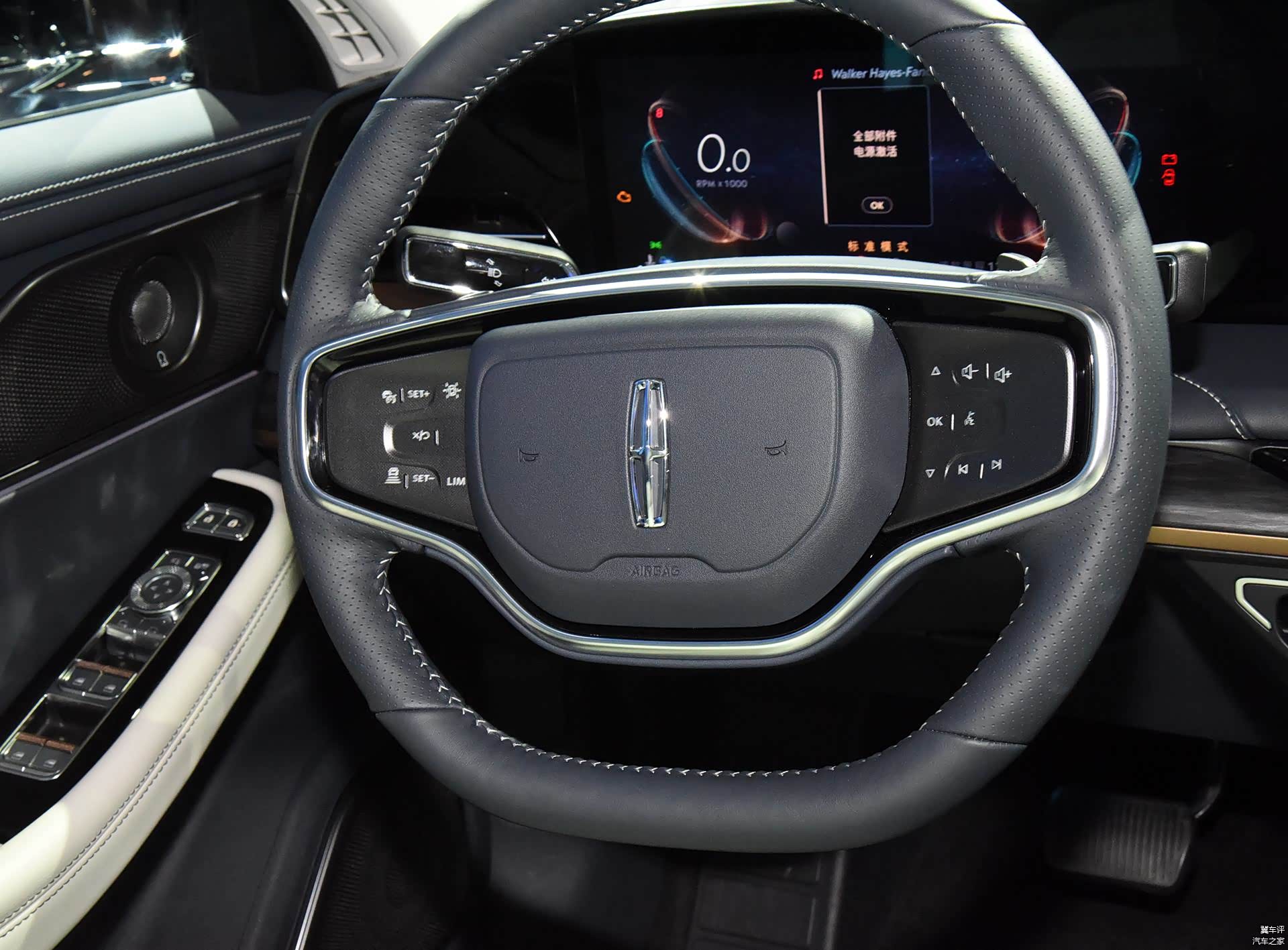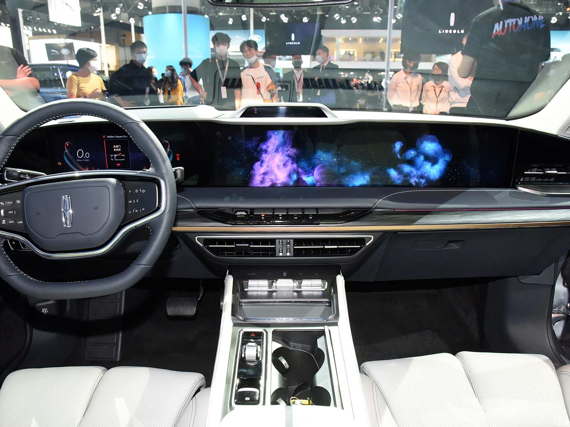 拉开感应式隐藏门把手进入车内,12.3英寸+27英寸的大屏几乎覆盖了整个中控台,并且作为标配出现,灵感源自浩瀚宇宙的“林肯星云人机交互界面让您沉浸于数字化升级版感官悠享之旅,大屏显示清晰且具有不错的响应速度。