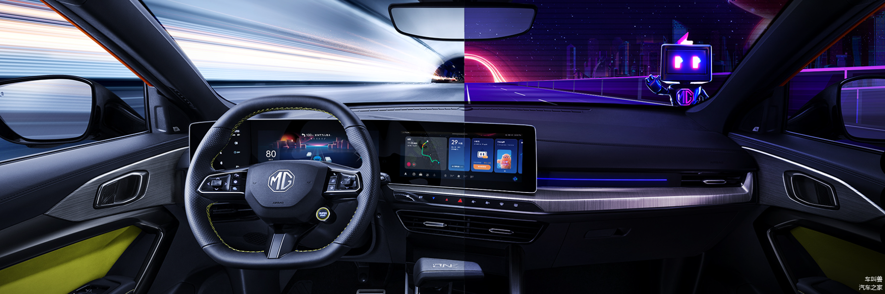 和激进的外观不同的是,新车内饰采用了颇具科技感的座舱设计,呈“折线形”设计的三联屏设计颇为吸睛,每一块屏幕之间还存在一定夹角,对驾驶席呈环抱的姿态。关于内饰还是这个大屏幕是最大的吸睛亮点,30英寸环抱式三联大屏,无论是绝对尺寸还是视觉冲击感都是相当到位的,车机则是搭载最新的斑马洛神智能座舱系统,可实现深度的智能语音交互,并且具有智能养成式AI语义,可实现自由跨屏交互、智能人机交互、深度语义识别、智能人机共驾等,上汽的车机在国内还是很有优势的。