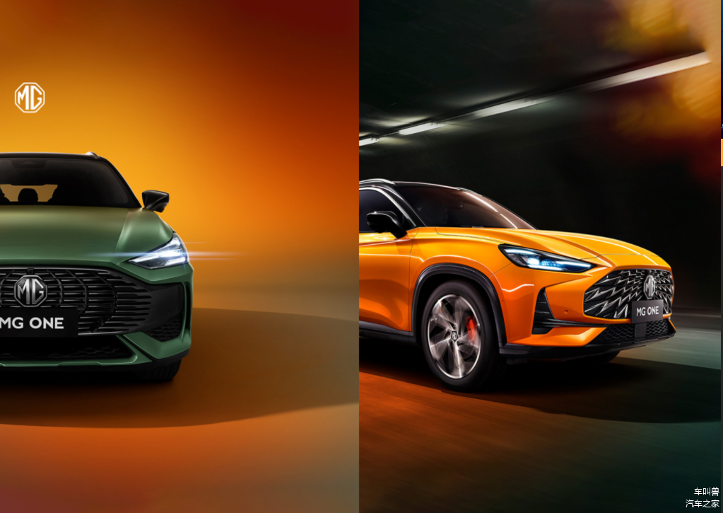 车身尺寸方面,MG ONE的长宽高尺寸分别为4579/1866/1601(1617)mm,轴距为2670mm,整体尺寸比MG领航略小。而车身配色上,新车提供了荒野绿和气泡橙车漆,不同的配色展现出了不同的运动与时尚。