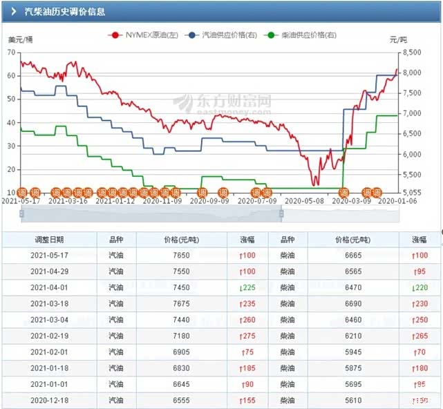 进入2021年以来,汽油的价格一直都是在涨涨涨。最近的一次调价,是在5月14日,汽油、柴油价格每吨均提高100元,达到了7650元/吨。换算下来,92号汽油的零售价在6.7~6.8元/升之间。