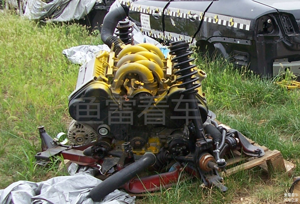 先来看看这缸体部分,上半段呈现了典型的V形夹角,第一反应就是传闻中的3.0T V6发动机,当然这仅仅是侧面的,对比十三年前拍摄到的3.0V6实机图,区别其实挺大的,两边缸体部分的夹角明显收缩,更为紧凑,老3.0V6分的很开,所以整机重量相当大,十多年过去了,奇瑞不再是当初的吴下阿蒙,多年的历练经验从2.0TGDI就能看出,没有失败哪来的经验?发动机的设计上也是同样如此。