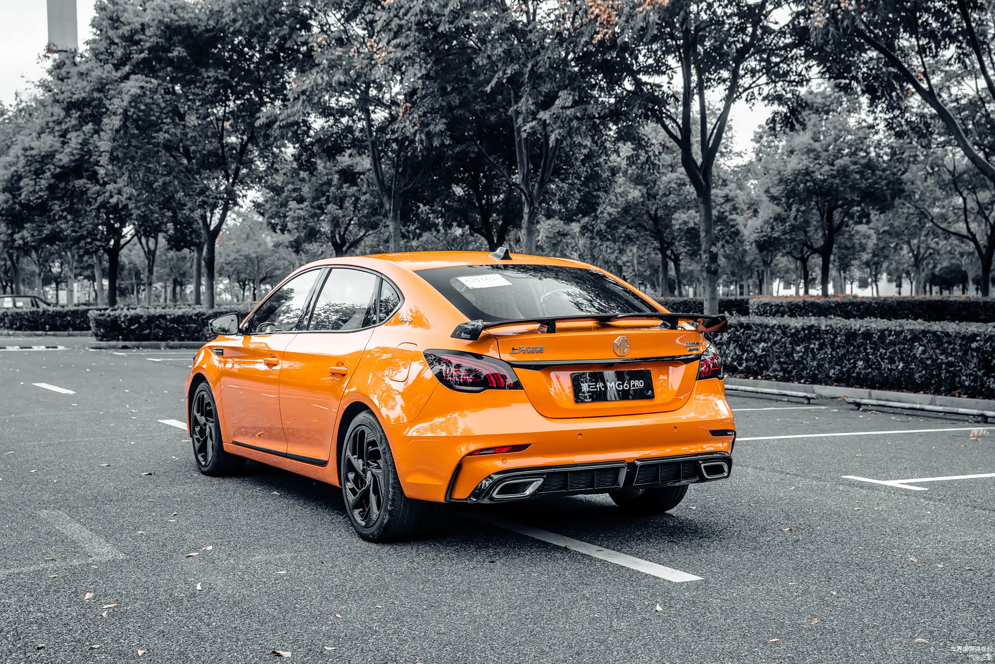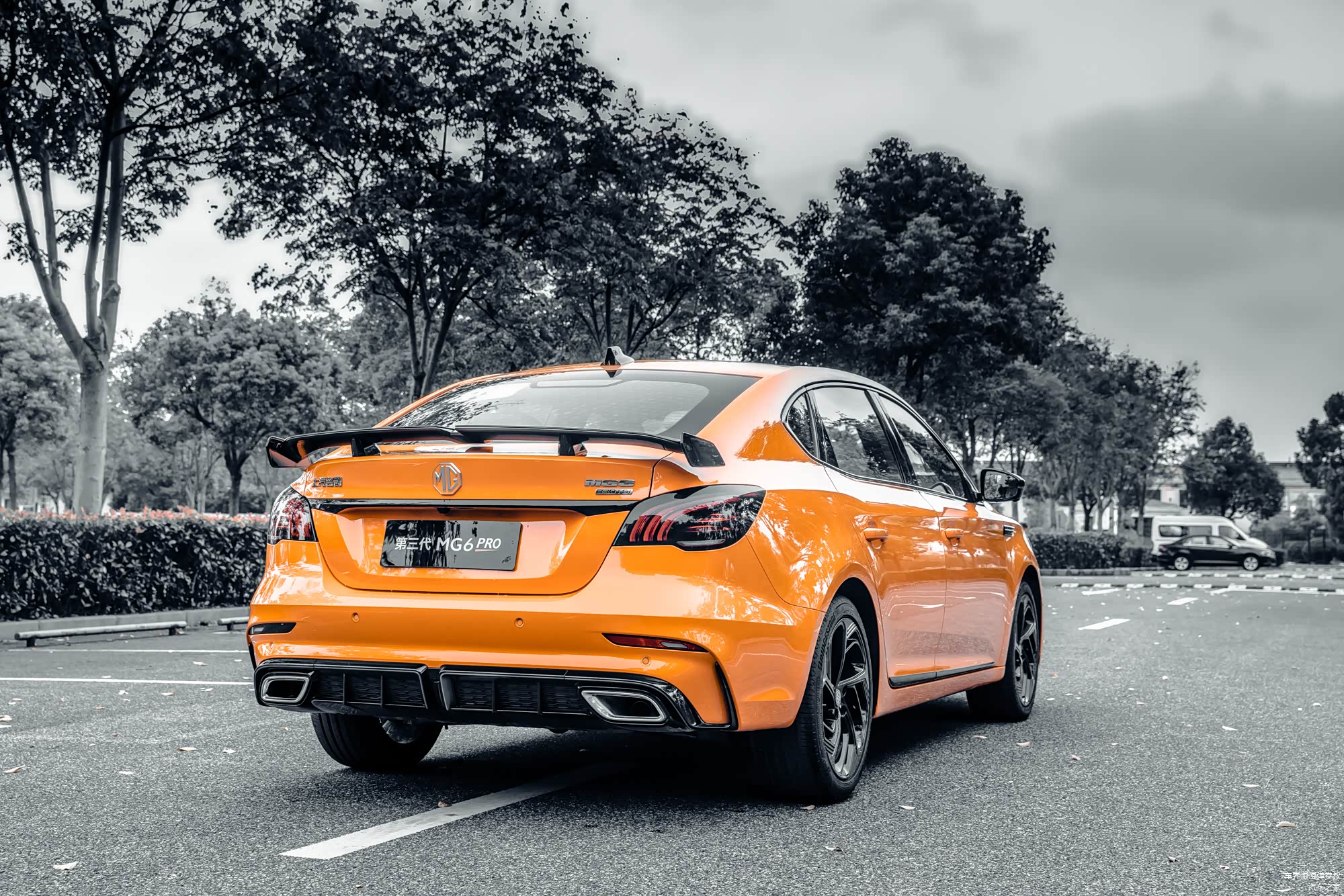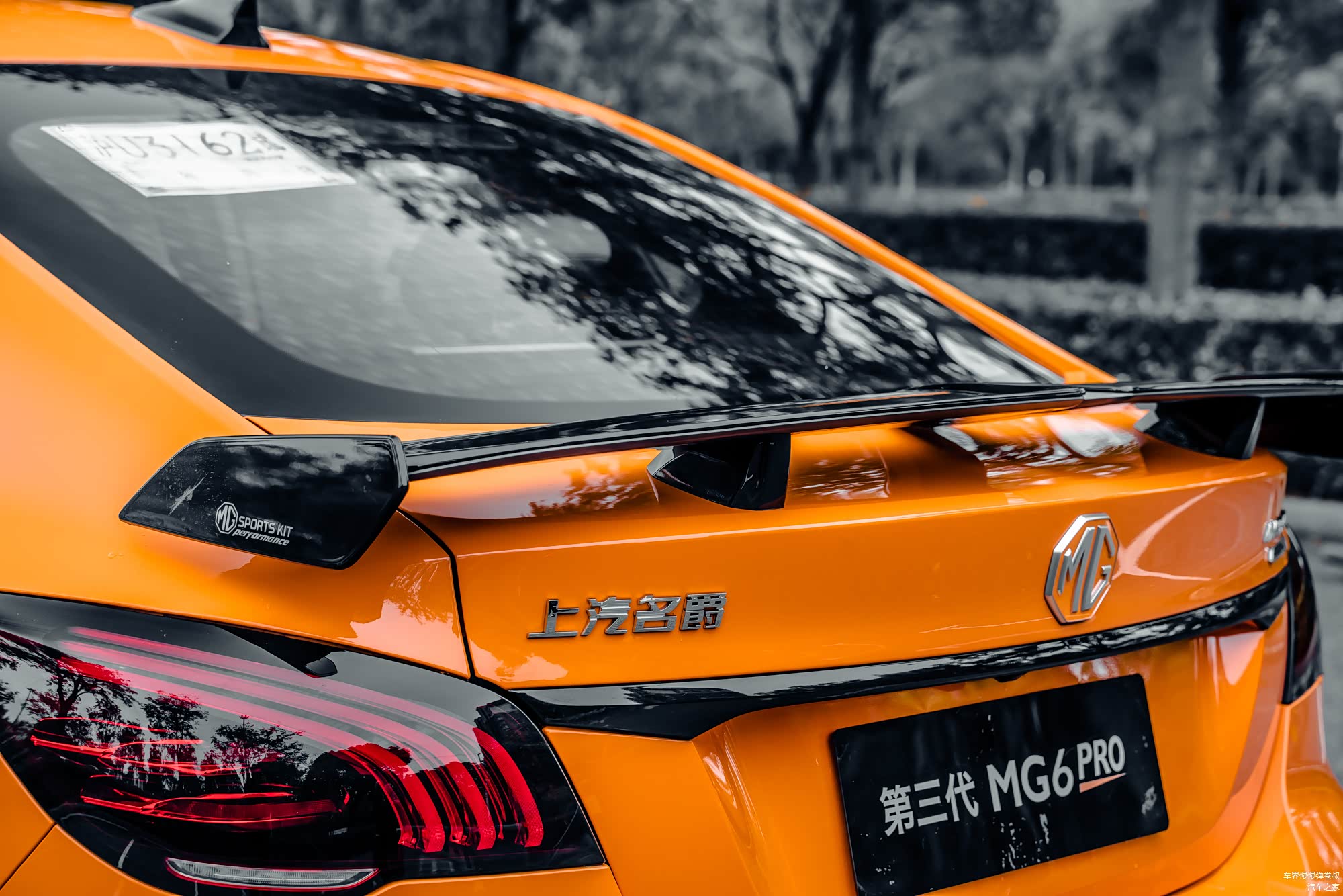 尾翼是尾部最吸引人的存在,碳纤维是不存在的,毕竟这个价位用到碳纤维尾翼也是痴心妄想了,至少MG6 Pro还算诚实,没有用到碳纤维的贴纸。塑料就是塑料,至少在轻量化上有所帮助。