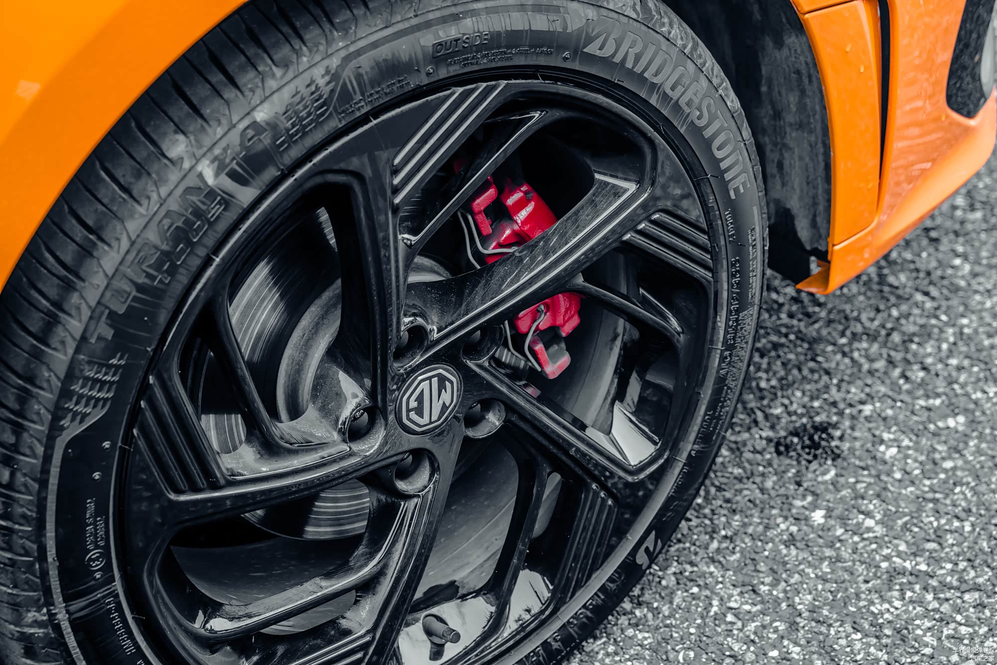 整体车身侧面的流畅感还是比较强的,很明显头小屁股大,浓浓的掀背造型符合当下主流的轿跑风格,配合18寸的普利司通运动轮胎,以及运动轮毂和红色刹车卡钳,至少有内味了。