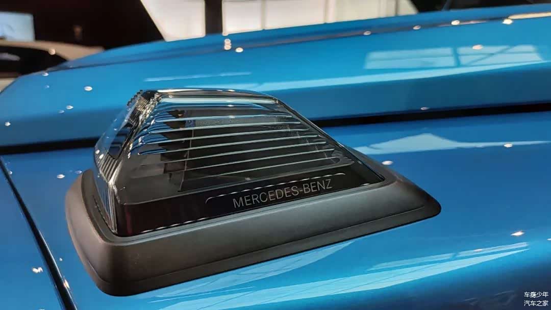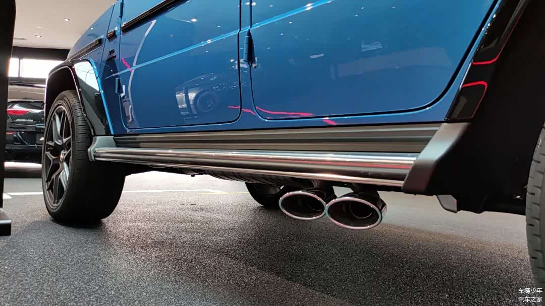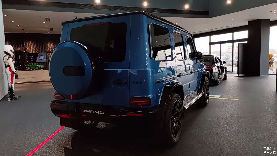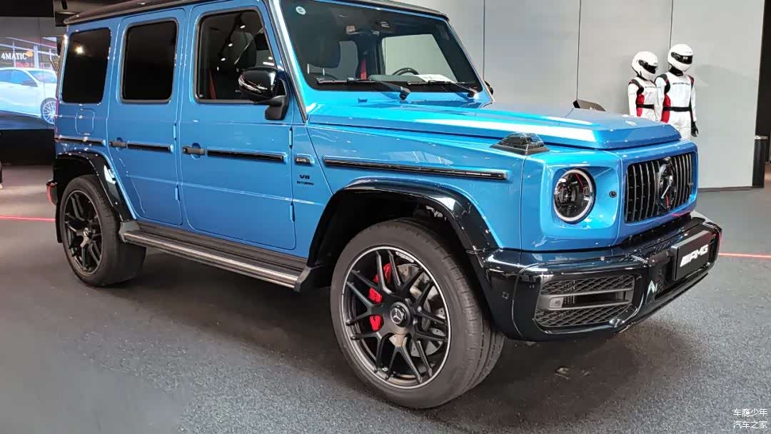 奔驰G级,是德文单词Gelandewagen(越野车)的缩写,时至今日,奔驰G级已经诞生了将近40年,是奔驰旗下存在最久的车型之一。狂飙艺术家特别版的外观内饰有三种搭配:木星红色非金属漆+双色Nappa皮革座椅,孟加拉红/黑色(菱形格纹);南海蓝色金属漆+双色Nappa皮革座椅,游艇蓝色/黑色 (菱形格纹);松林绿色金属漆+双色Nappa皮革座椅,珠光钛灰色/黑色(菱形格纹)。这台就是其中之一,配备了特殊的南海蓝色金属漆,实车看起来十分有质感。