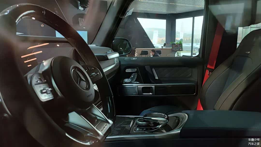其内饰维持了奔驰家族一贯的高水准,大尺寸的双联屏幕、全新样式的空调出风口、平底式的AMG方向盘都十分前卫,整个车厢所营造的豪华感很足,并采用怀挡式换挡机构。副驾驶前方的拉手和中控位置的三把锁依然保留,彰显了它的野性,红色安全带是这台特别版独有的。