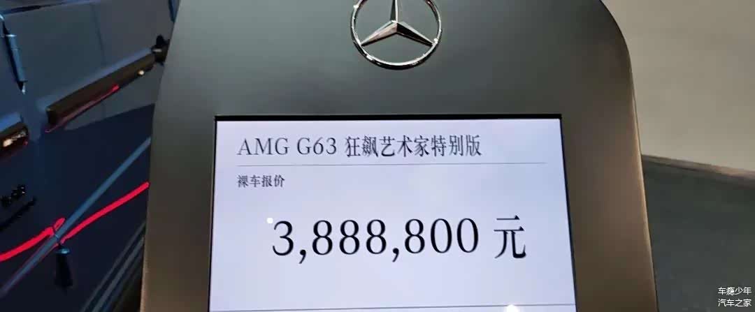 这次实拍的是AMG G63狂飙艺术家特别版,经过了一系列的特殊选装定制之后,这台车的裸车价为388.88万元。