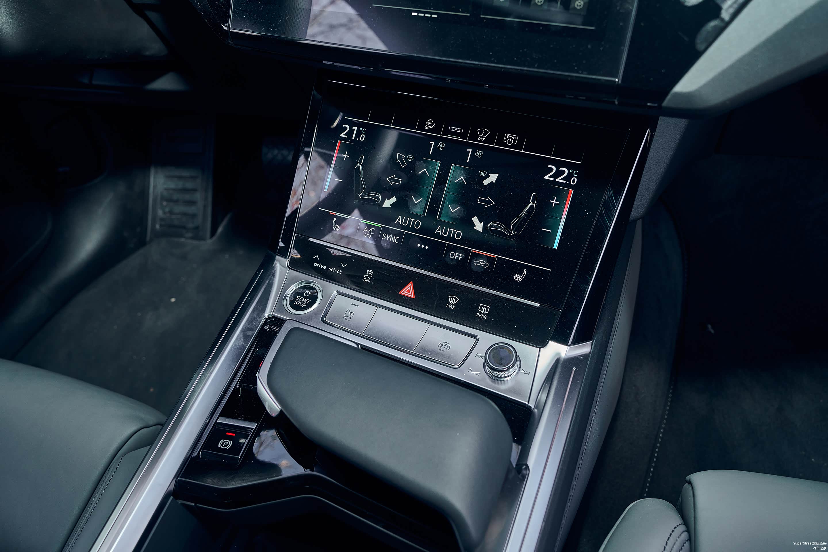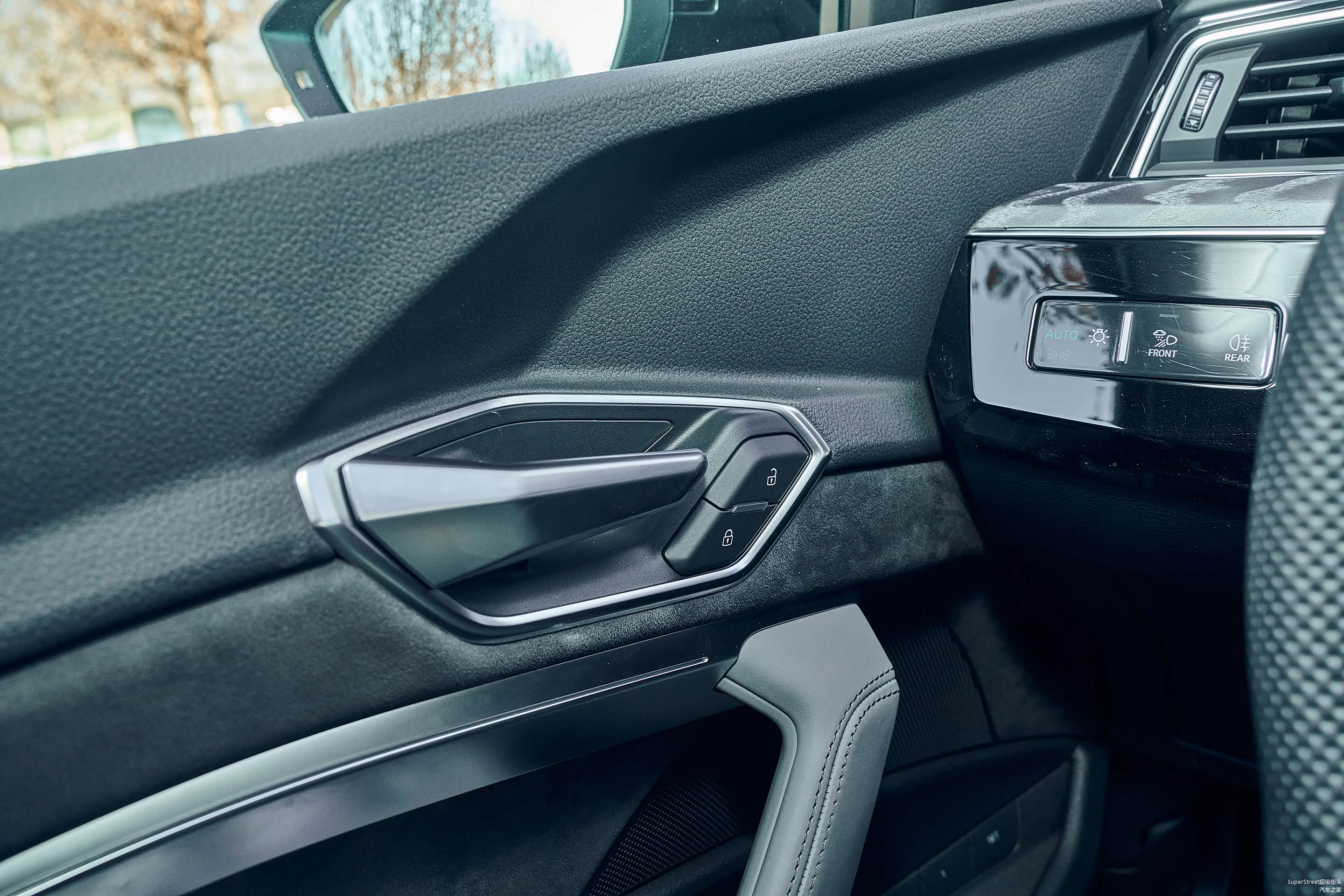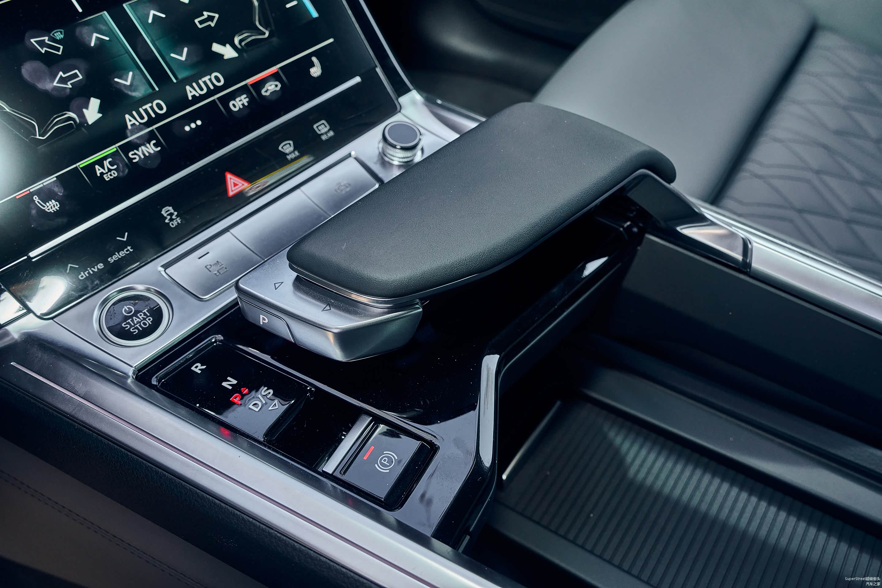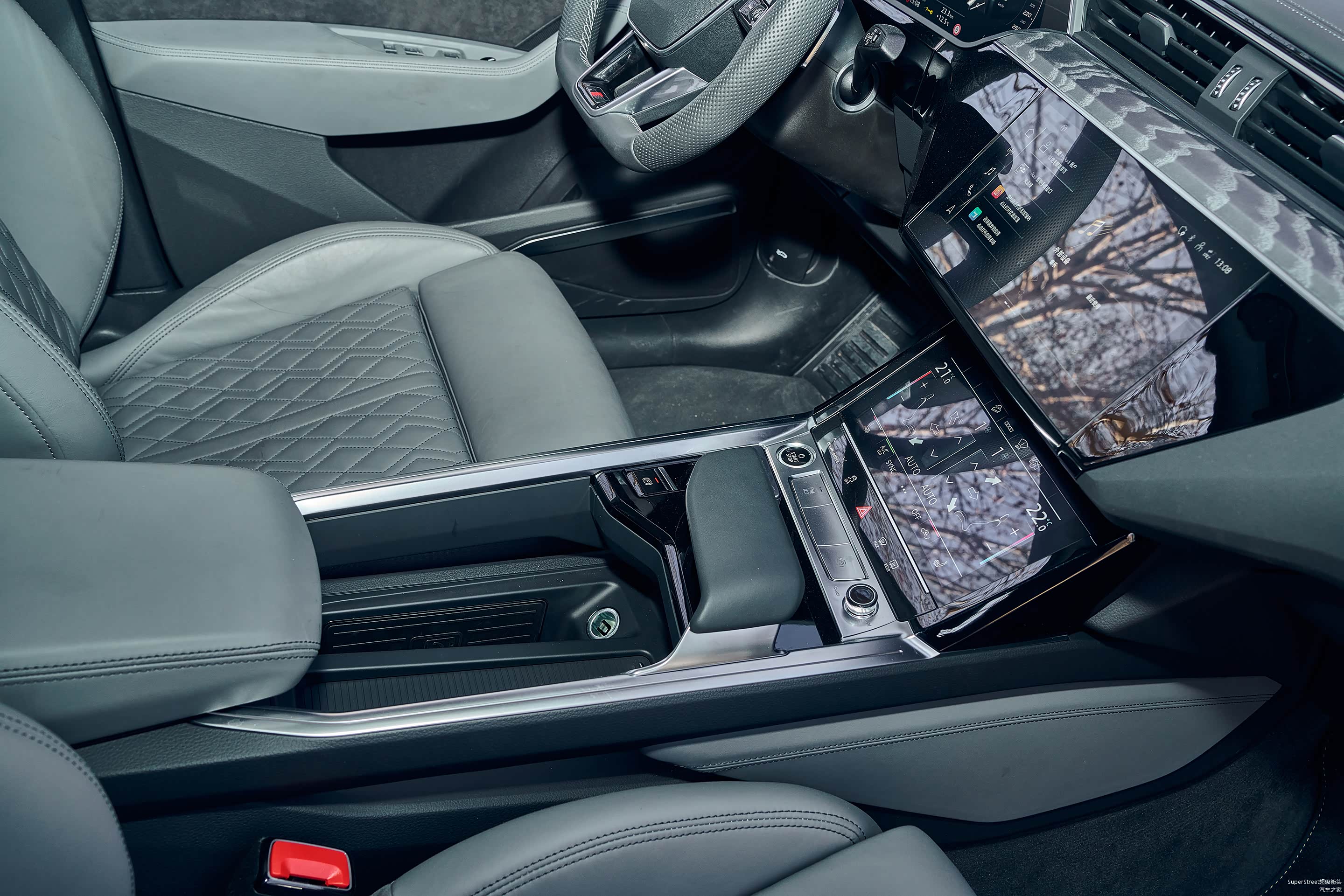 独创的超宽设计的电子档把,握持感很舒适,上下滑动式换挡机构,使用起来也很顺手。亚银色表面质感、黑色亮面中控板和档把的软质材料,各种材料的组合运用得很协调。