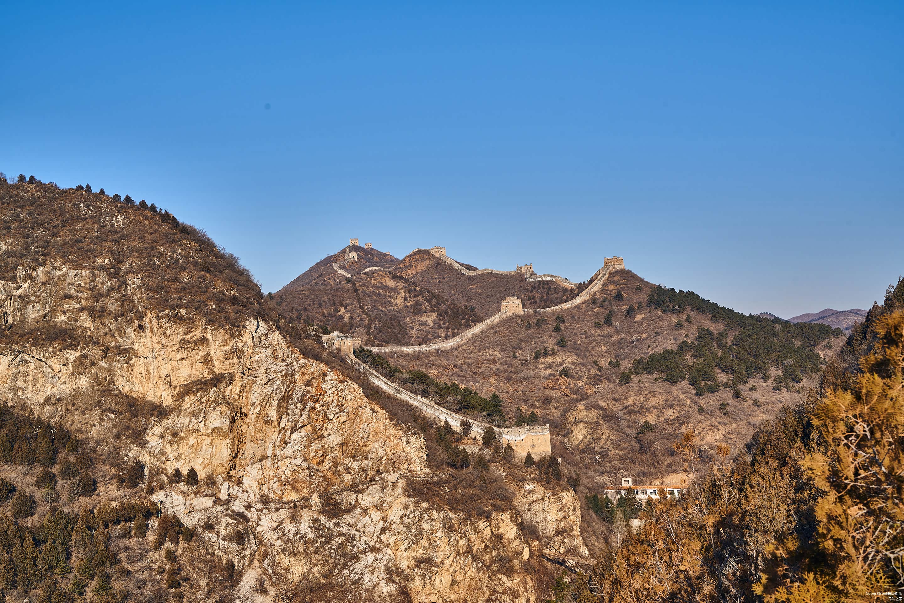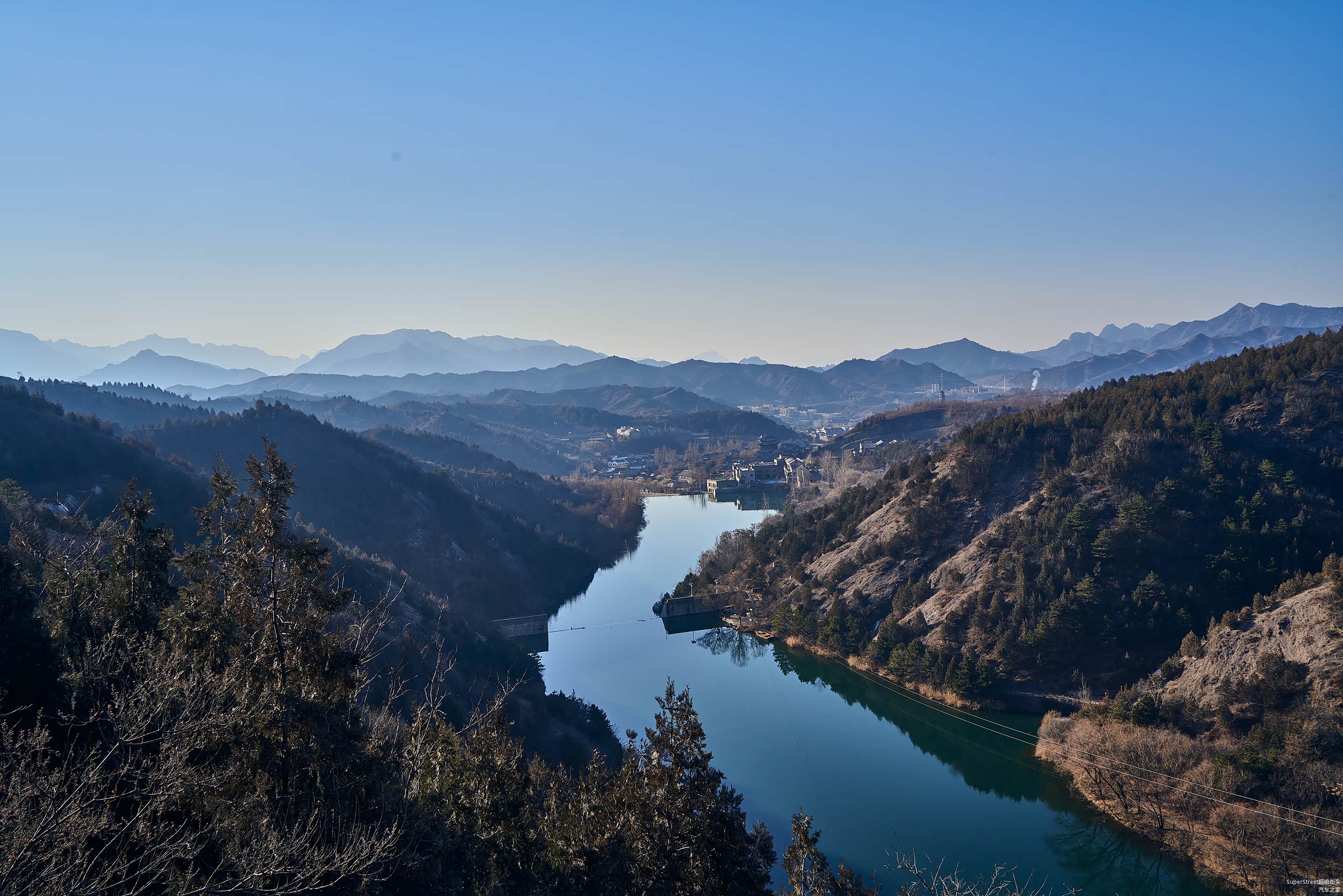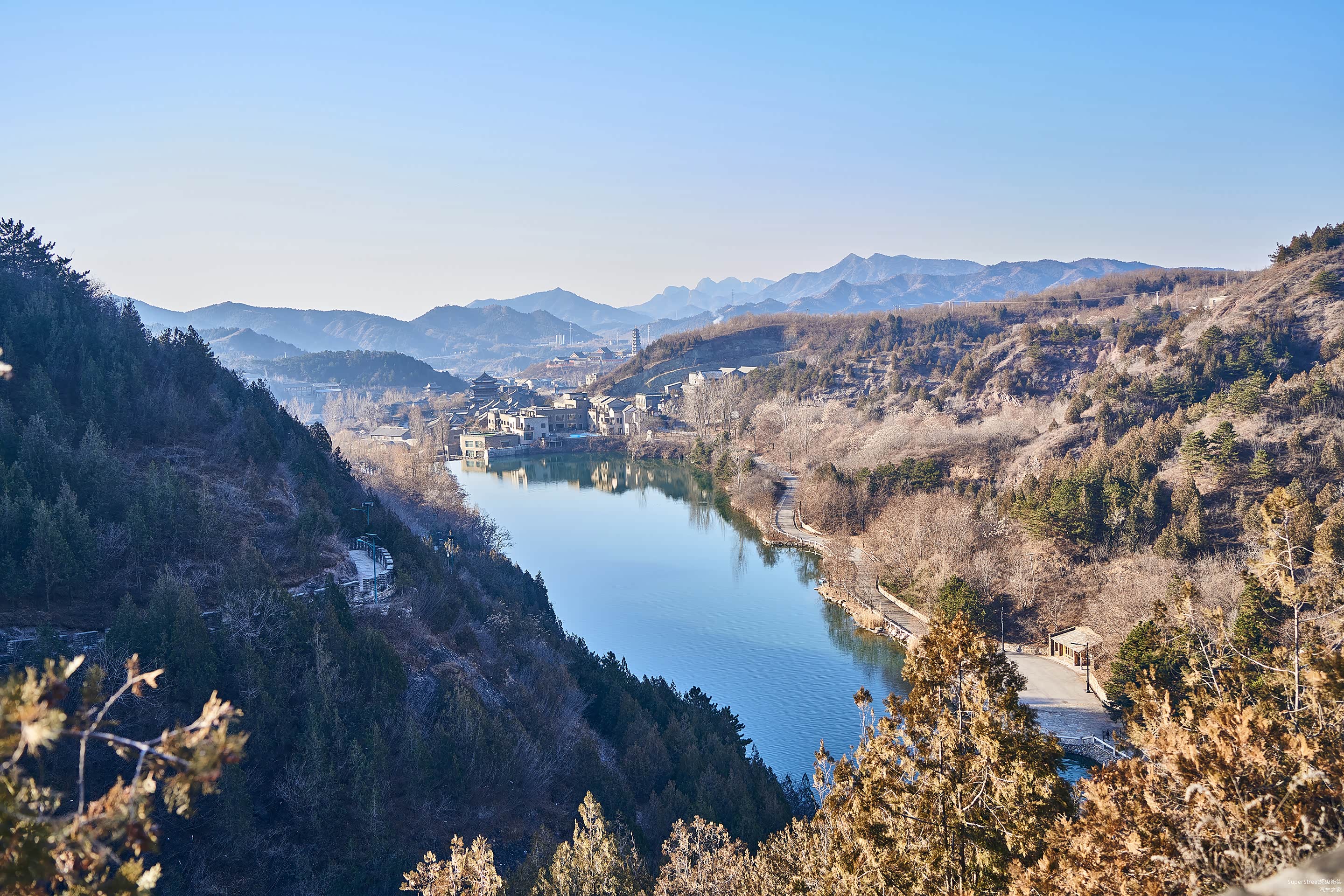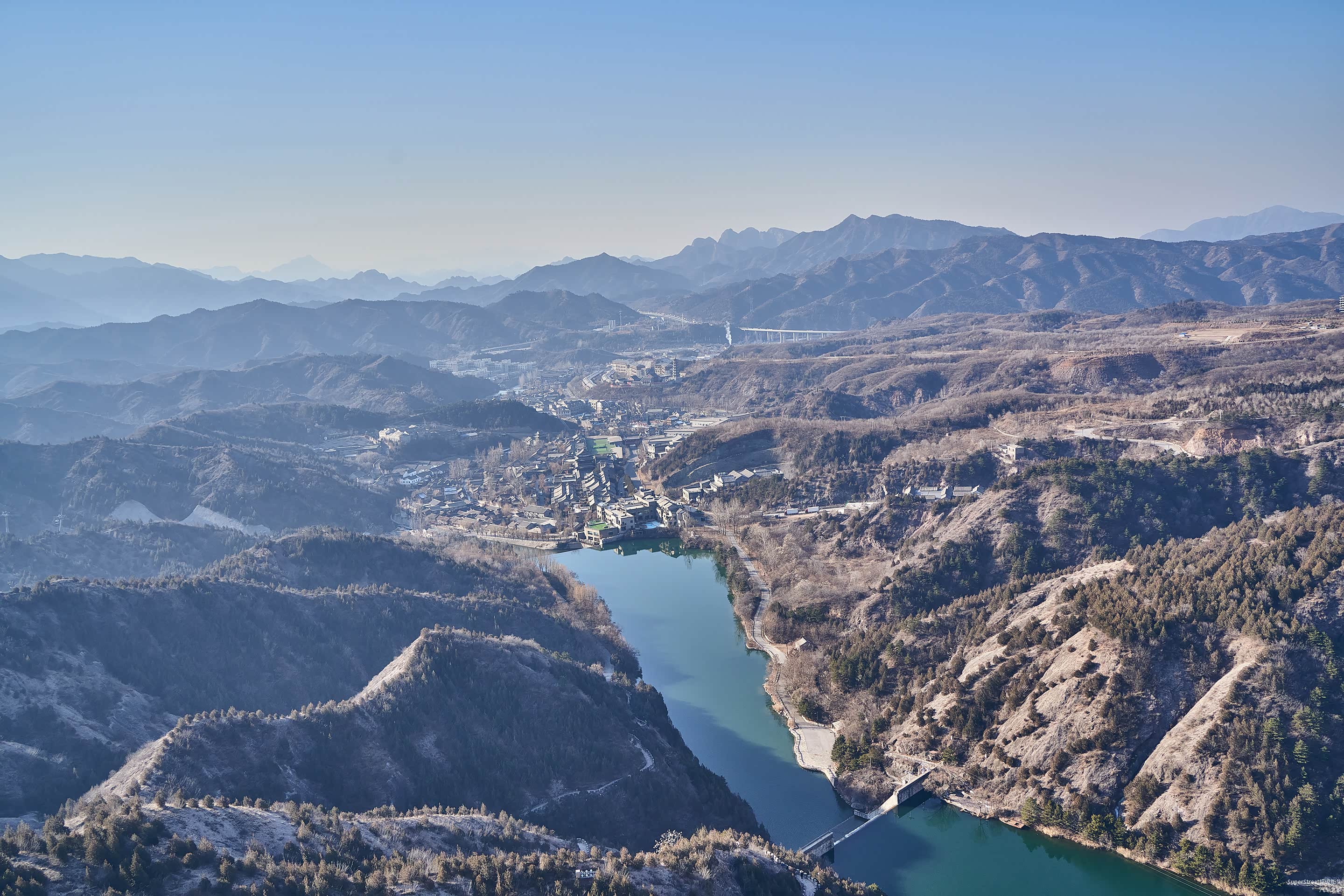 在攀爬途中可以看到水库,这里的水库有两个温度,一个是来自密云水库的冷水水库,另一个则是来自当地温泉的温水水库。