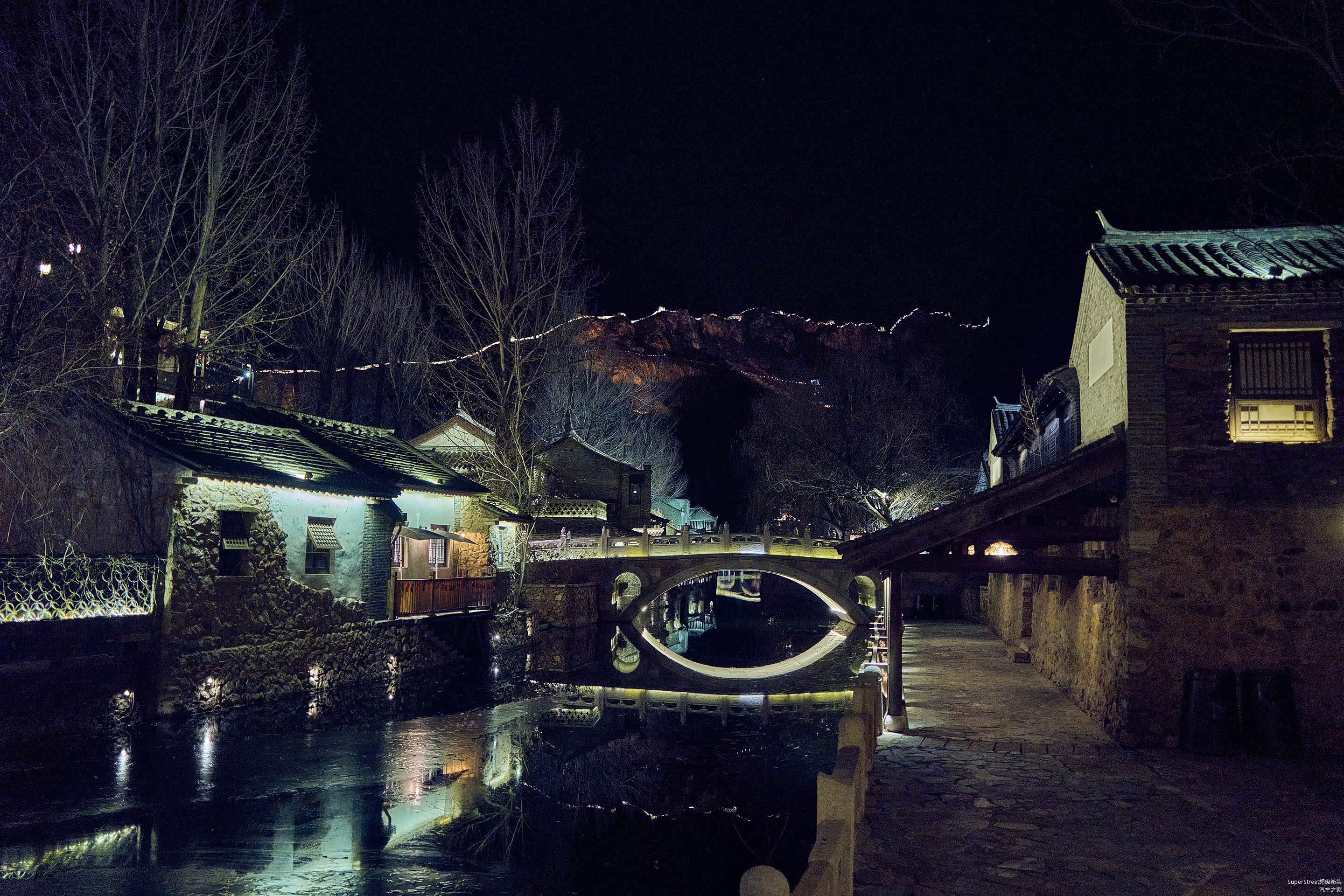 晚上再次来到古北水镇闲逛,拍拍照片,寒冷的天气下,也几乎没有了天光,简单拍几张就作罢了,经过水镇的广场,可以看到各种表演,甚是热闹。