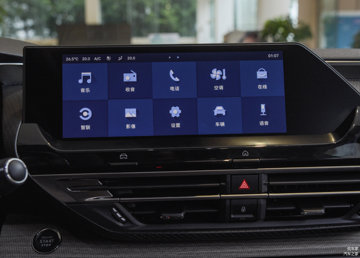 内饰方面,凡尔赛C5X采用全液晶仪表盘,并搭配三辐式多功能方向盘,中控多媒体触控屏采用悬浮式设计,其下方还保留了部分物理按键,中央过道区域配备了按键式的电子换挡机构,连个灰色的装饰面板与整车中控台层次分明的设计形成了很好的搭配,让科技感与时尚感并存。新车的后备厢容积达到545L,后排座椅放倒之后,最高可扩展至1640L。