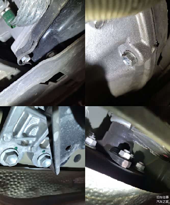 首先是发动机变速箱油底壳,都没有拆卸和渗漏油痕迹,发动机变速箱基脚螺丝未见拆卸,传动轴螺丝未见拆卸,发动机变速箱连接处螺丝未见拆卸,可以进一步排除发动机变速箱有分解维修的可能性,而且真的是没有一滴漏油的迹象。