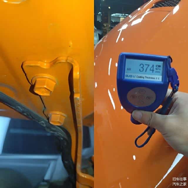 因为全车贴了隐形车衣,所以漆面数值会偏大,这是正常的,所以机盖漆面数值正常,铰链螺丝未见拆卸,那么可以排除拆卸更换和钣金喷漆的可能性。