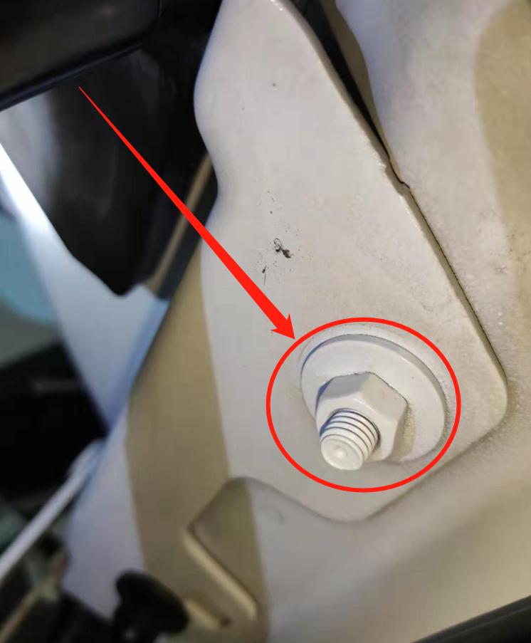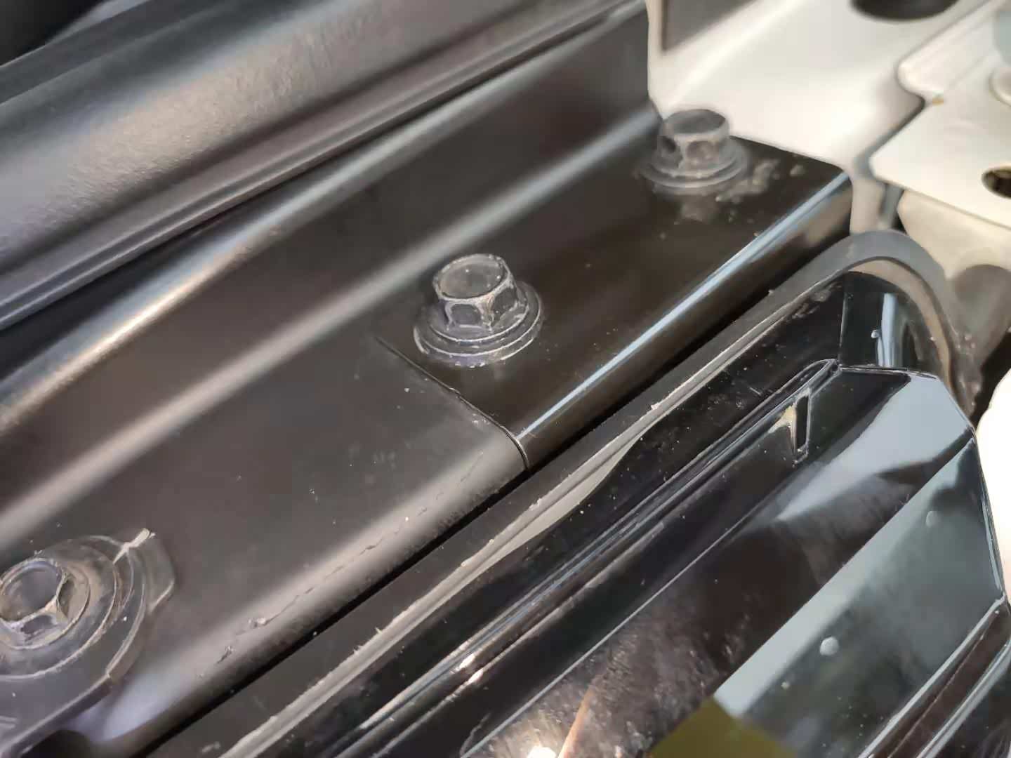 大家看到这张图肯定会觉得这个机盖螺丝是后喷的漆,因为螺丝和周边都比较新,不过这个螺丝没有拆卸喷漆,因为路虎很多车子的机盖螺丝都有一个塑料保护壳,观察螺丝的时候需要把塑料卡扣去掉所以显得比较新。