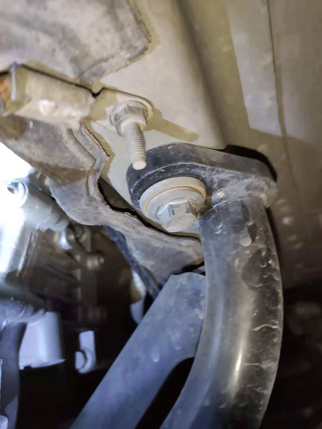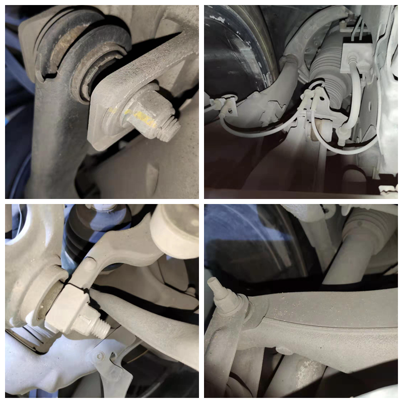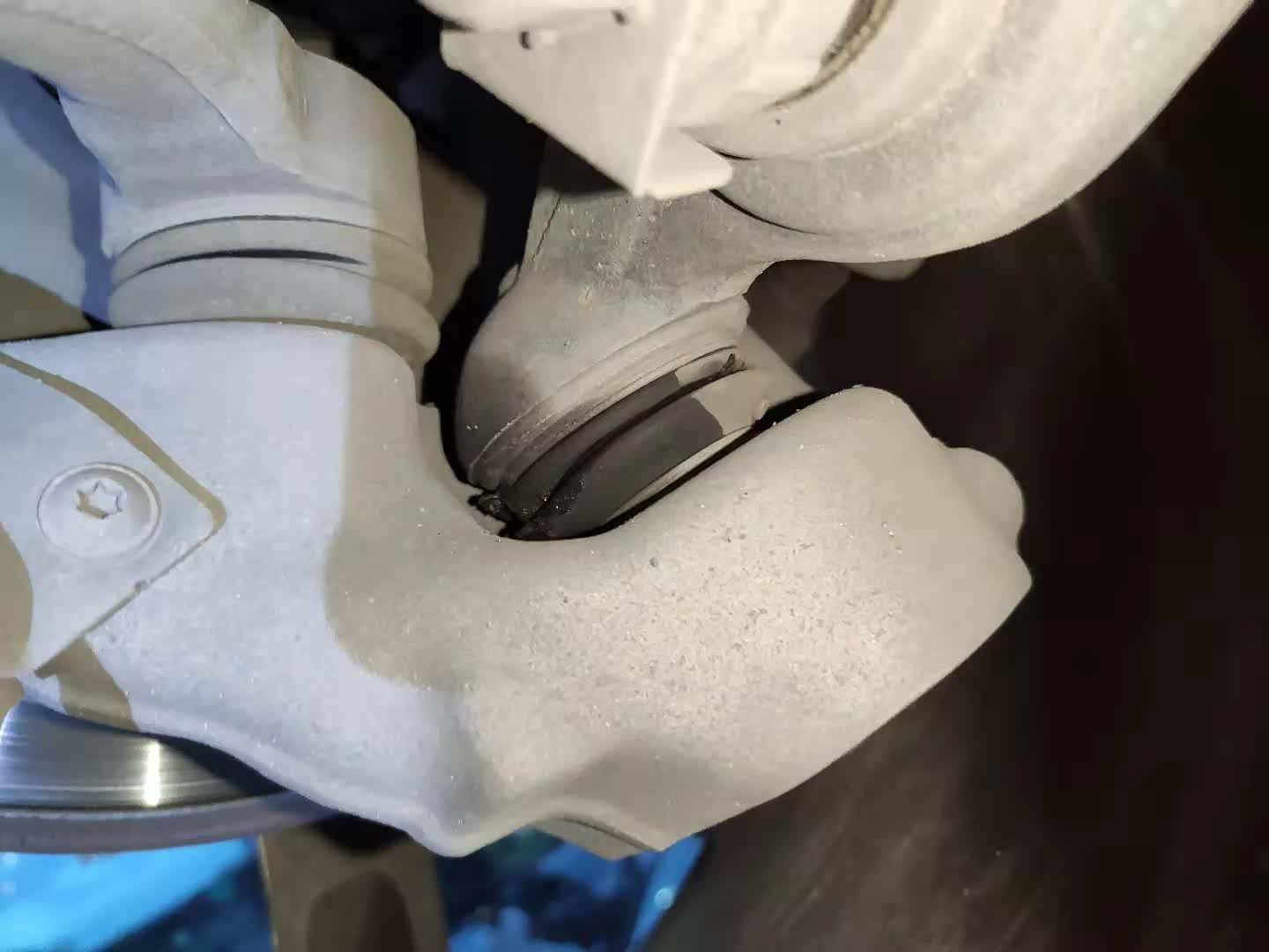 不过右前下摆臂球头防尘套老化破裂了,出现润滑脂溢出的情况,虽然暂时不影响使用但是如果润滑脂泄露完就会加剧磨损造成松旷异响。