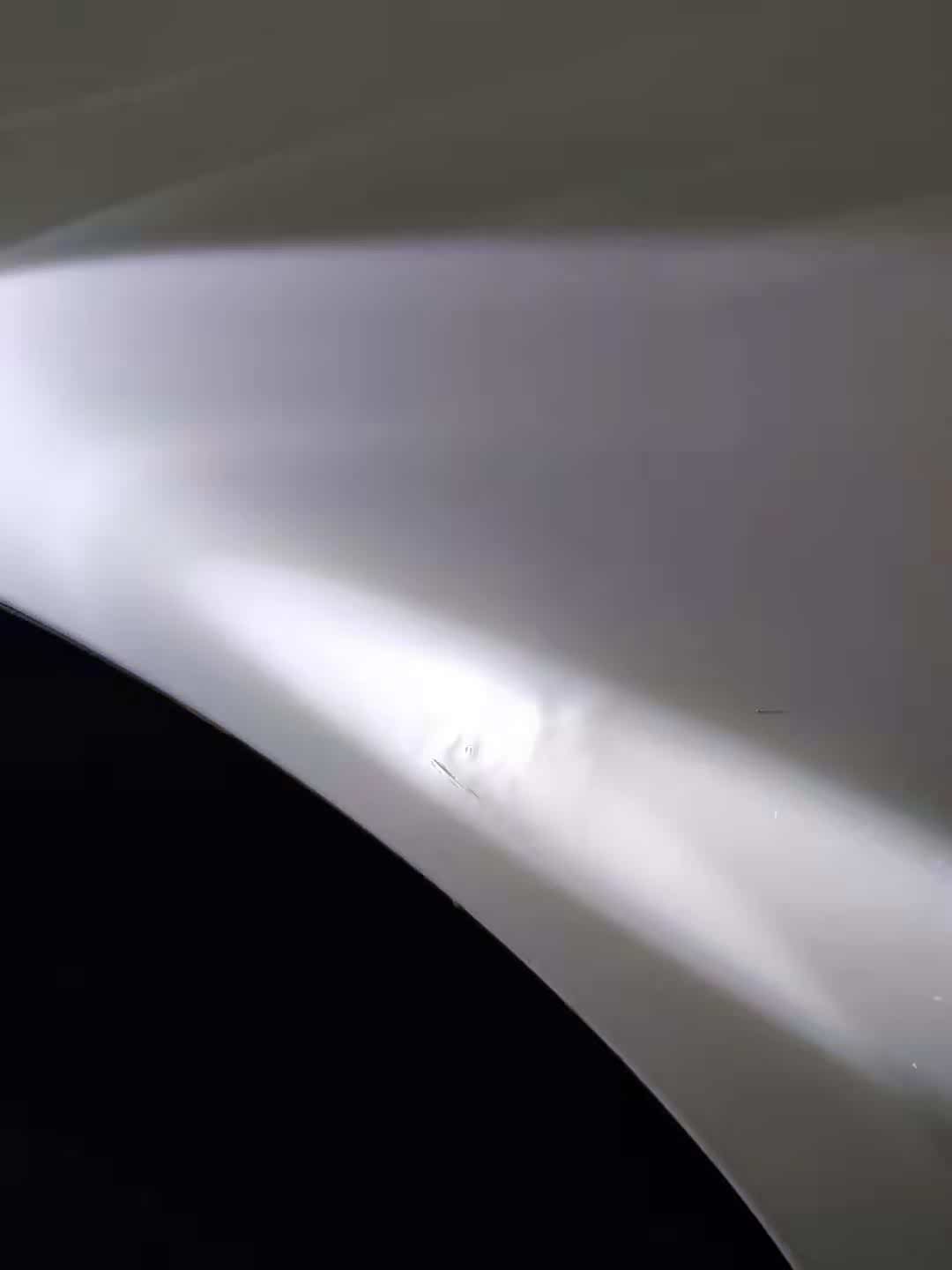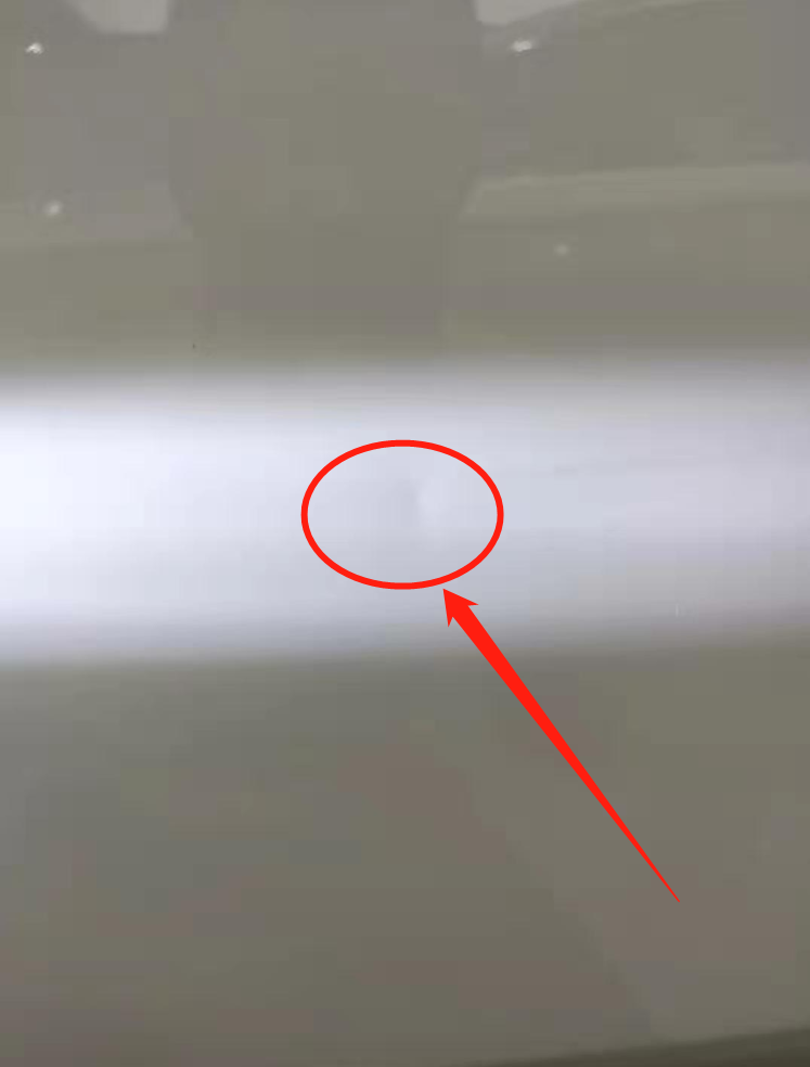 用手电侧着照射漆面,发现左后门有一个小坑,这个不是什么大的问题,可能是开门时候不注意磕碰到尖锐物体造成的。