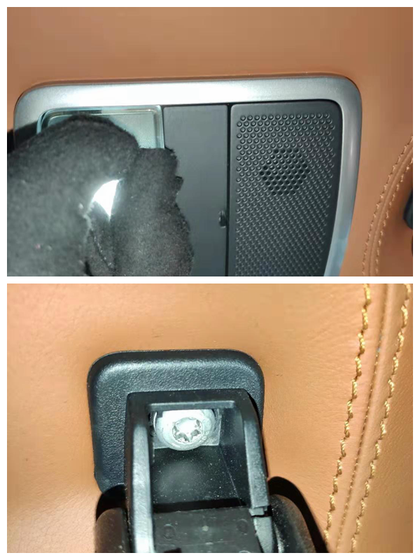 灯光饰板和车顶扶手有拆卸的痕迹,这时候葫芦娃我突然明白了,这车应该是改装内饰了,因为全车门饰板拆卸、座椅拆卸、车顶也有拆卸,并且车顶是皮质的,忍不住为自己的机智点个赞。