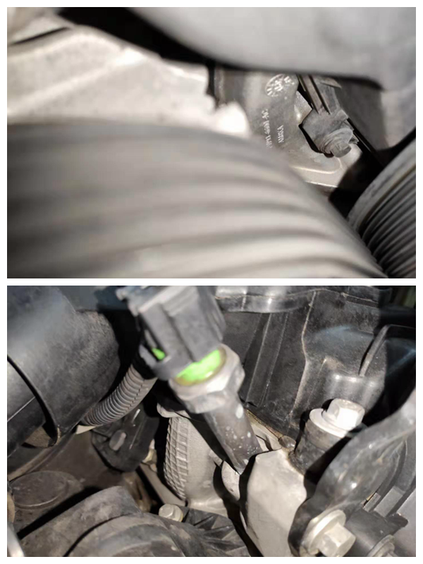 检查正时皮带的保护壳螺丝,发现都有拆卸拧动的痕迹,并且前部的皮带轮也有拆卸,应该是更换正时皮带了,这一项在后台发来的维保记录里得到了证实!