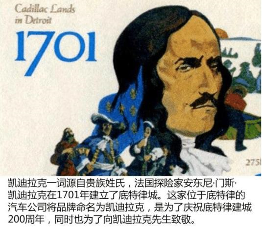 凯迪拉克(Cadillac)并非是创始人的名字,而是为了致敬底特律城的建立者探险家安东尼•门斯•凯迪拉克先生。当时恰逢底特律城建立200周年,凯迪拉克品牌就此诞生。