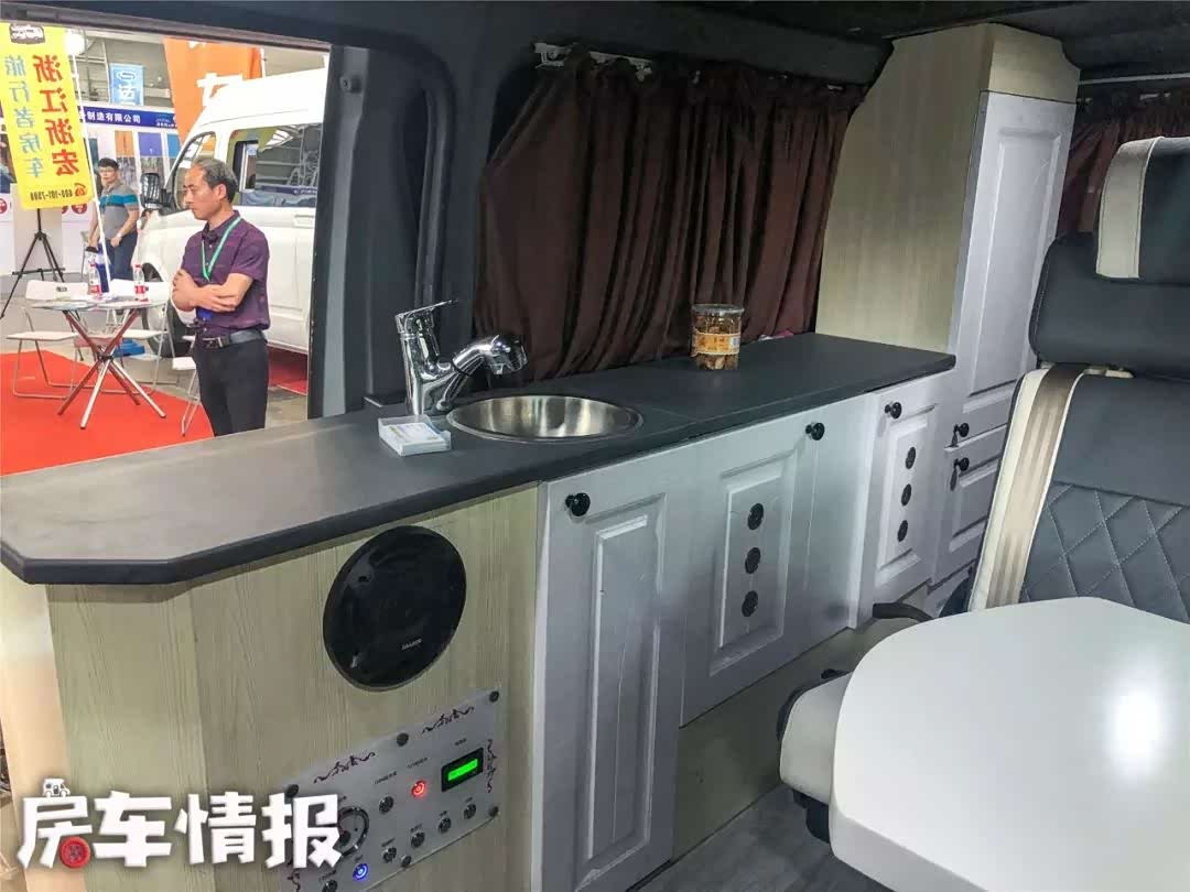 车厢侧滑门一侧设有简易的厨房用具,包括洗菜池、储物柜等,可满足日常制作餐食的需求。