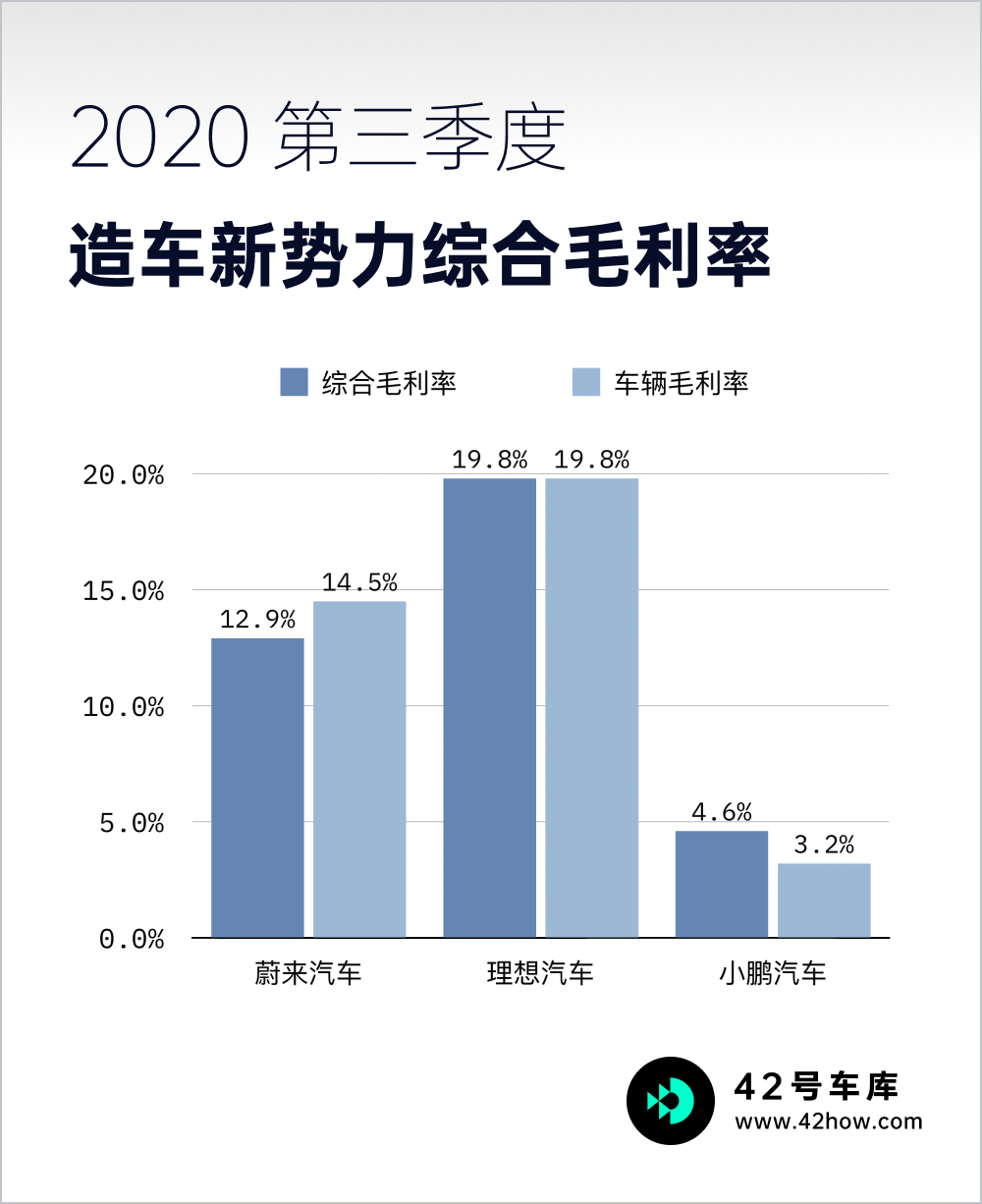 三家财报中最亮眼的数字是综合毛利率(括号内为车辆毛利率)。