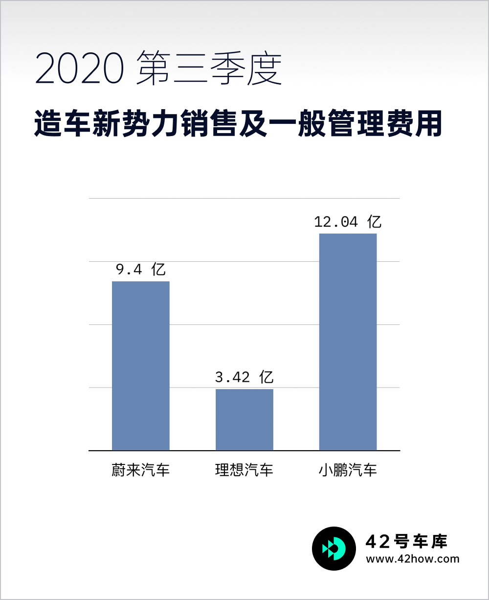 2020Q3 理想的销售及一般管理费用是 3.42 亿元,对应的交付量是 8,660 辆 也就是说对于理想而言每辆车的销售及一般管理费用是 3.95 万元。