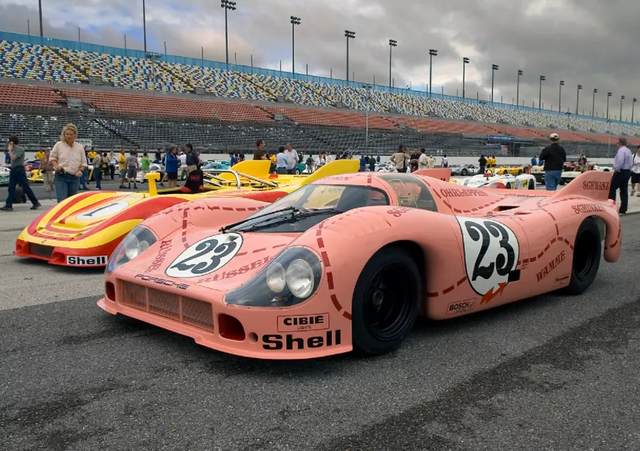 不过粉色有个例外,这事就发生在保时捷身上,他们曾经的“粉猪”涂装倒是成为了经典。故事要从917赛车说起,上世纪70年代,保时捷为了挑战400km/h的勒芒记录,打造了917/20赛车。为了减小车轮产生的乱流,轮拱变得圆润、突出,车头也像是被铁锹拍扁了,相比普通的917,这台车显得臃肿了许多。
