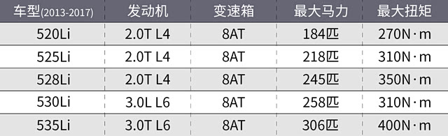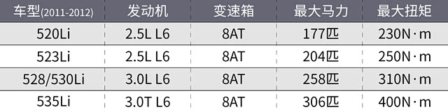 至于动力部分,国产F18提供了多种动力规格。在早期上市的2011、2012款中,F18提供了520Li、523Li、528/530Li以及535Li这4种规格。并且当时的5系还全系都是直列六缸发动机!