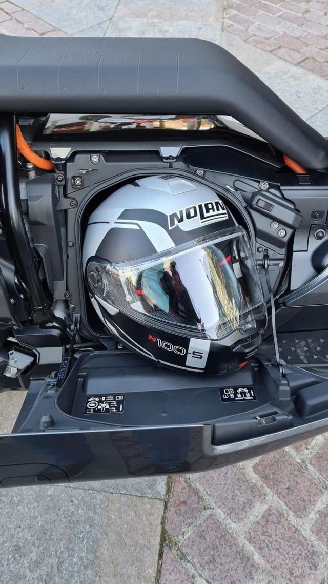 为什么说CE-04的储物空间是一大亮点,其实并不是因为它的储物空间有多大,而是非常独特的位置和开启方式。在车身侧面打开面板之后可以容纳一顶全盔,能有如此大的座下空间,其实跟内部的布局有很大关系。