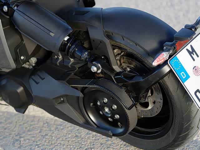 因为,来自宝马iX电动汽车中使用的模块电池组,位于平坦地板的底部,而所有电子设备都在靠后面一点,于是座下就有足够的空间空置出来。中置电机的布局采用皮带传动,与传统的踏板车相比,这种设计后悬架的簧下质量会大大减少。