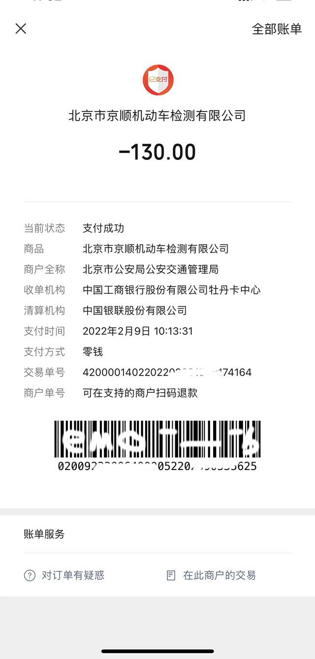 在填好收件人姓名、地址、电话并提交材料之后,你需要自行支付130元。这里包括铁牌制作费以及最后一次临时号牌的工本费。