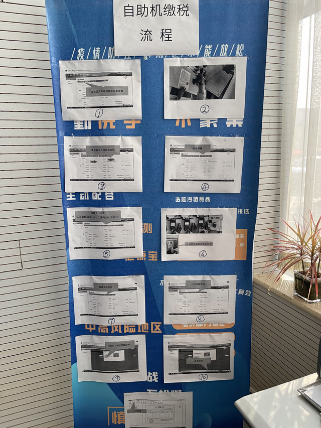 瞅瞅!帮我代办验车上牌服务的这个小哥就是带着POS机来的。在这个自助缴税的服务大厅,通过屋内的电脑可自行完成缴税操作,流程就公示在旁边的易拉宝上。