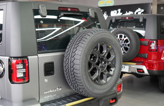 2022款BJ40环塔冠军版的轮毂尺寸为265/65 R17,匹配的轮胎是固铂Discoverer ATS,这是一款高性能全路况越野轮胎,可以在越野路面上提供更好的动力操控以及及时的道路响应。黑色轮毂搭配上红色的卡钳,大大增强了运动感。