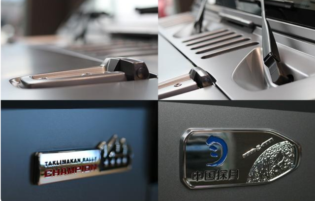 全新“暴风灰”专属亚光漆色,不仅传递着大漠的壮观,更有着西域的神秘,视觉冲击感极强。专属车身饰件:2022款BJ40环塔冠军版身处何地都是最亮丽的风景线。2022款BJ40环塔冠军版更具视觉辨识度。拉花设计硬朗、稳健、富有冲击力,再配合“TAKLIMAKAN RALLY”字样与冠军徽标,彰显环塔冠军风采;酷黑格栅和酷黑轮辋,无惧剐蹭,不仅能够让人放开手脚尽情去野,更是将越野的潮酷进行到底;右翼板新增中国探月荣耀徽标,搭配左翼板“CHAMPION”、四颗星以及“塔漠”元素与冠军荣耀交相辉映。