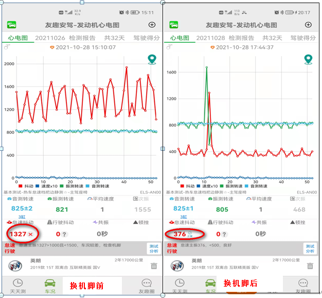 需要注意的是,机脚是跟发动机一起质保的,质保期内可以免费索赔。以下是英朗索赔机脚的前后对比: