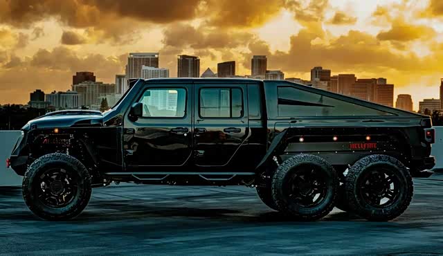 著名的“6x6”皮卡改装厂Apocalypse近日基于Jeep角斗士,推出了一套名为Hellfire(地狱火)的改装方案。
