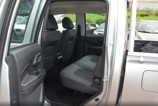 这款风骏5的座椅采用的是皮加织物的混搭座椅,主驾驶位支持前后调节以及靠背调节,而且由于皮卡的底盘较高,所以有着不错的视野感。后排的乘坐空间较为宽敞,并且后排座椅也同样是皮加织物的混搭设计,后排地台隆起程度较低,日常用车的舒适性是绝对OK的。