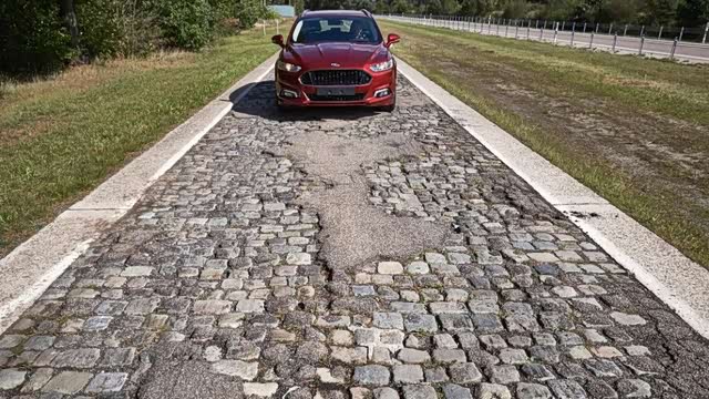 为了能更快更准确地获得车身疲劳寿命信息,汽车厂商都会在试车场内建立专门测试车身耐久性及寿命的路段,形式多为经过“强化”的卵石路、扭曲路、搓板路、石块路。其中所谓的“强化”,就是指将每种路况的颠簸密集度拉满,让车辆在强化路面上每行驶1公里,就达到正常道路100倍,即100公里的车身疲劳损伤。像是车辆在正常道路跑10万公里的疲劳状态,在这种强化颠簸路面上只需跑1000公里就能模拟出结果。如此一来,当工程师验证车辆设计寿命是否达标时,就能大幅缩短测试的公里数和时长了。