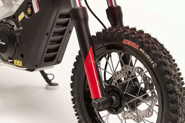 本田还为CRF-E2提供了不错的配置,包括33mm的前叉和DNM后减震器,支持预载和回弹阻尼调整。前避震行程210mm,后避震行程100mm。并且采用12英寸车轮,搭配Kenda Millville K771越野轮胎。前后标配190mm碟刹盘和单活塞刹车卡钳,刹车杆还具备调节功能。双梁铝车架,可调节的座椅高度(630mm-650mm)。
