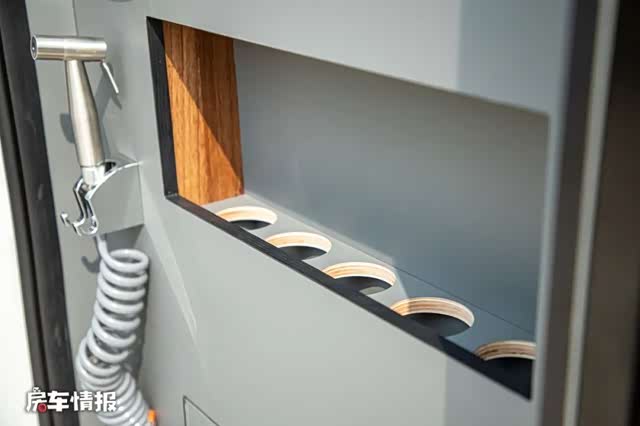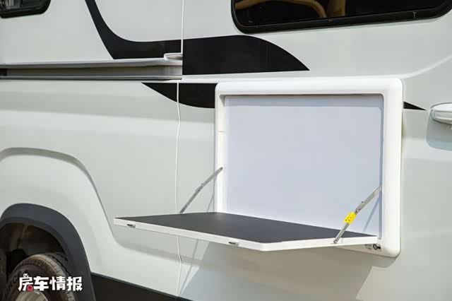 除去基础的遮阳棚,这款新车还加入挂衣钩这样的小设计,对于日后的使用还是有很大的帮助的,另外车身外部的生活功能配置也有所升级,提供了外置的淋浴喷头、调料瓶的置物架、外置电源插口以及外置翻板,天气好的时候也可以选择在车外进行烹饪,车尾部还加入了登车爬梯和备胎架,为日常使用提供更多的便利性。