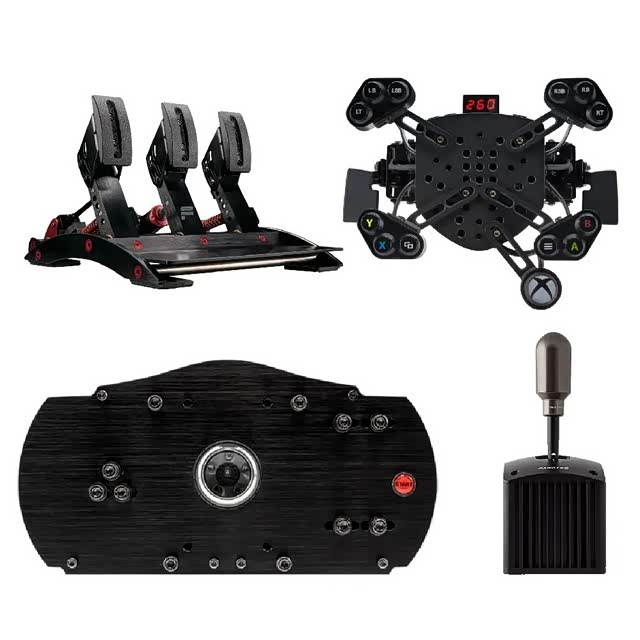 最后是赛车外设中的爱马仕,高端的Fanatec,他们家方向盘是拆成基座和盘面分开卖的,踏板也是单独的所以很少有套装概念。简单来说,先来一个上万的直驱方向盘基座,再选一个几千的方向盘盘面,然后再配几千的踏板,最后是手排和手刹,自己去某宝感受一下吧。不过他们家现在出了“亲民”的DD Pro套装,基座、盘面、踏板一起7000-9000块,一步到位。