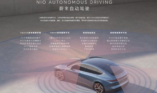 以蔚来ET7为例,其超算平台 NIO Adam 使用了 4 颗 NVIDIA Drive Orin 芯片,包括 2 颗主控芯片、1 颗冗余备份芯片、1 颗群体智能,以及1颗个性训练专用芯片,综合算力1016 TOPS。并且有超高带宽的图像接口,ISP 每秒可处理64亿像素。即便ET7拥有7颗 800 万摄像头,芯片算力也是完全足够的。